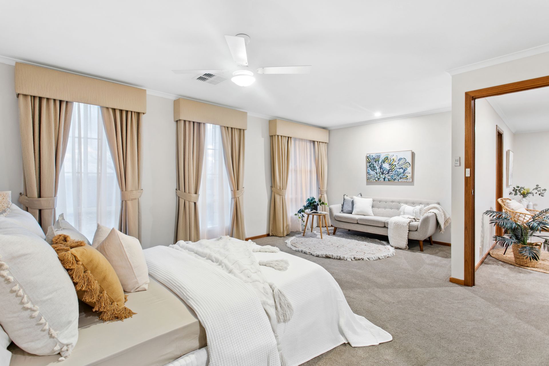 Heading upstairs you will find the master suite, fit for a king. At over 5x4 meters there is so much room to set up a casual living, office space or anything else to suit. The master bedroom flows into the large walk in wardrobe and into the updated ensuite, with walk in shower. The three remaining bedrooms are also very impressive in size and have built in wardrobes. All four bedrooms feature ceiling fans, and for year round comfort ducted reverse cycle air conditioning has been installed throughout the home. To help keep the bills down on such a huge home, a generous solar system has been installed. Other included features are ducted vacuuming and security system.