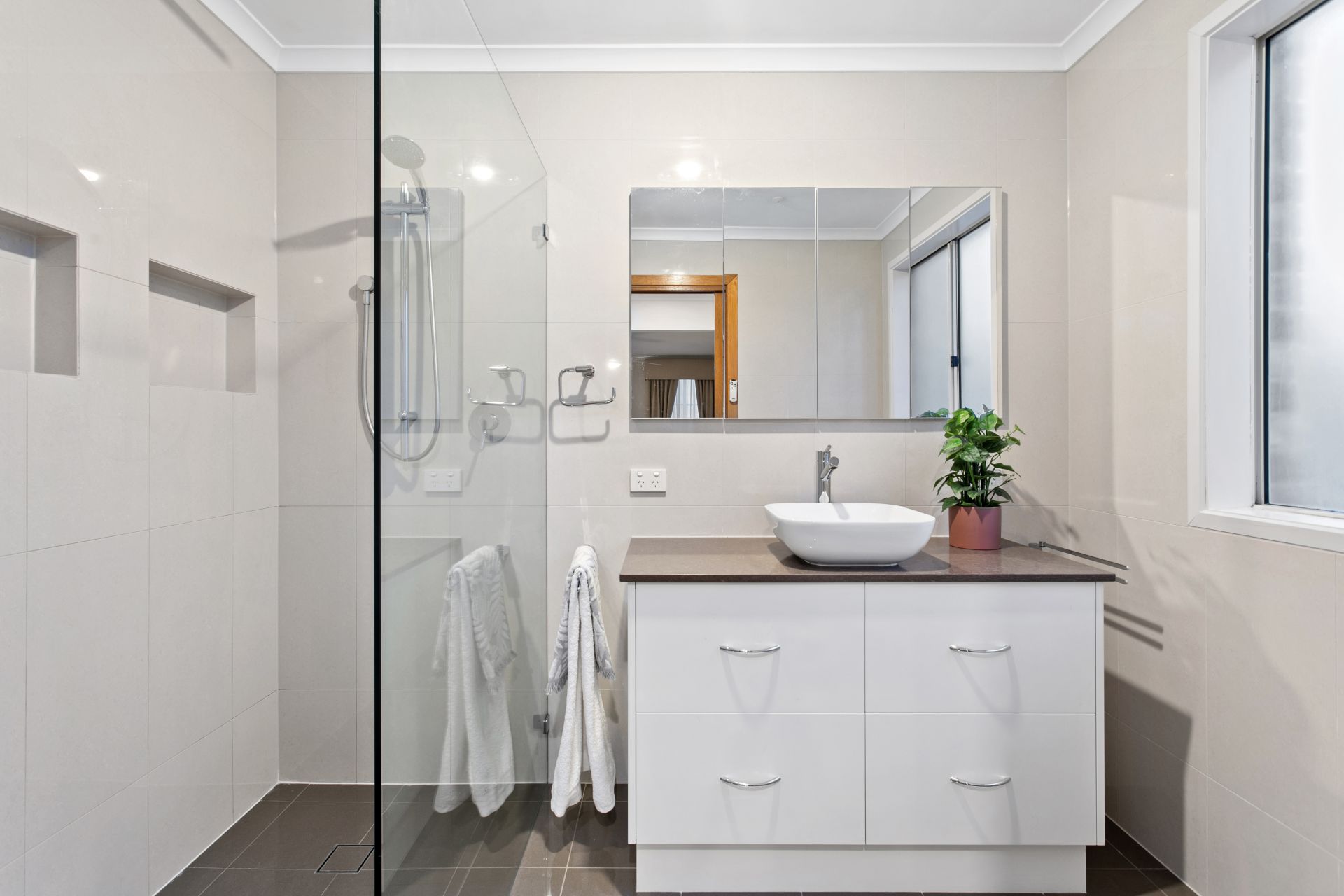 Towards the rear of the home on the lower level you will find the open plan living space. The family room is a nice place for everyone to casually hang while the chef of the home is enjoying making the most of the huge kitchen. The kitchen is well appointed with an abundance of bench and cupboard space, 900mm oven and gas cooktop, walk in pantry and dishwasher. The laundry flows off the kitchen and also has plenty of storage and also a laundry chute from upstairs for all the laundry.