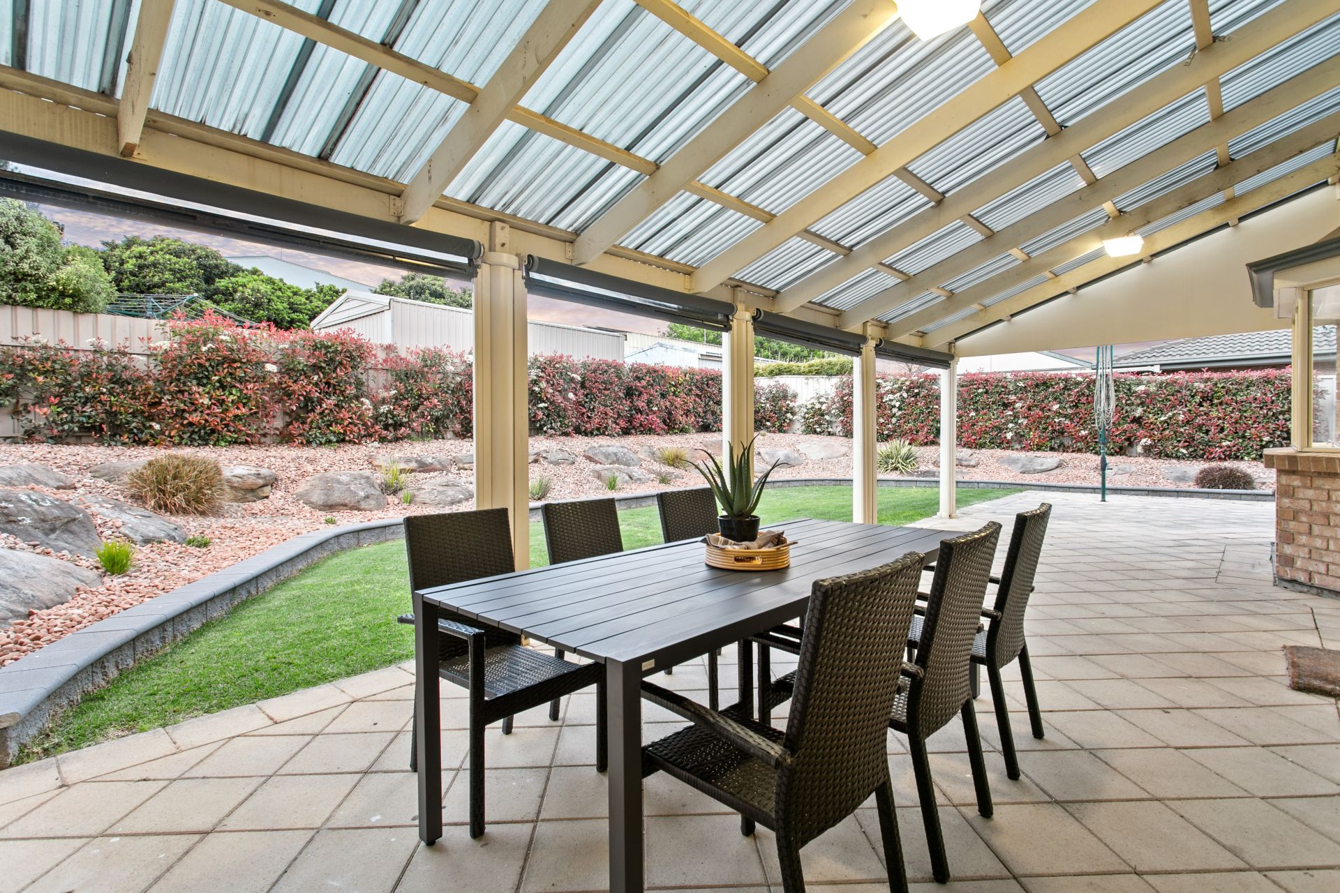 Heading outside you are in for a treat. Sitting on 626sqm there is plenty of room to move around. A pergola complete with outdoor blinds is the perfect place to host dinners during the summer months while watching the kids run around on the spacious, yet low maintenance lawn. The gardens have been well manicured and are also low maintenance and there is also a large workshop for the handy person to tinker away in.