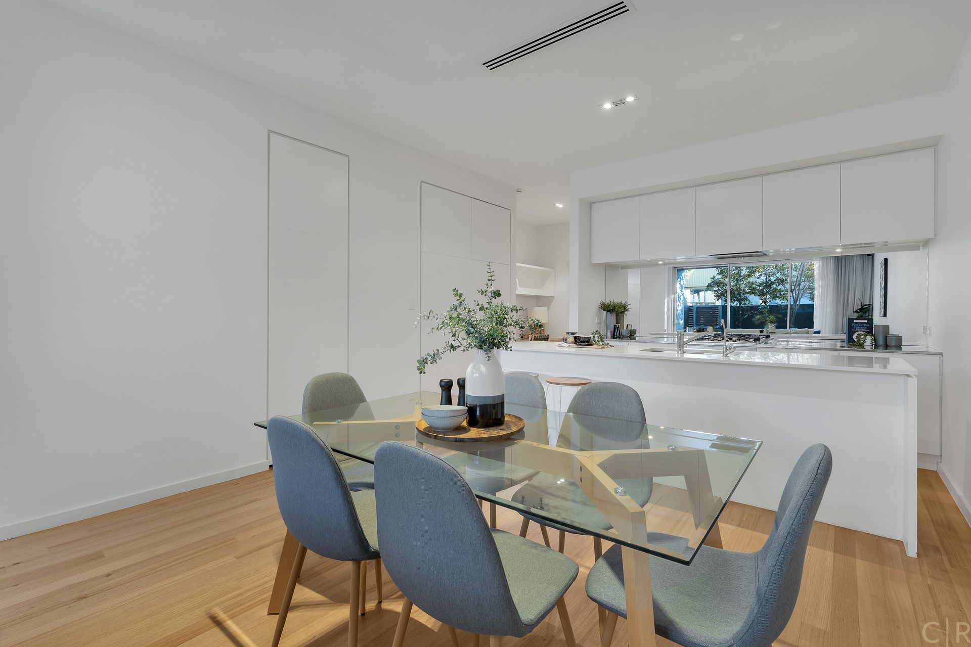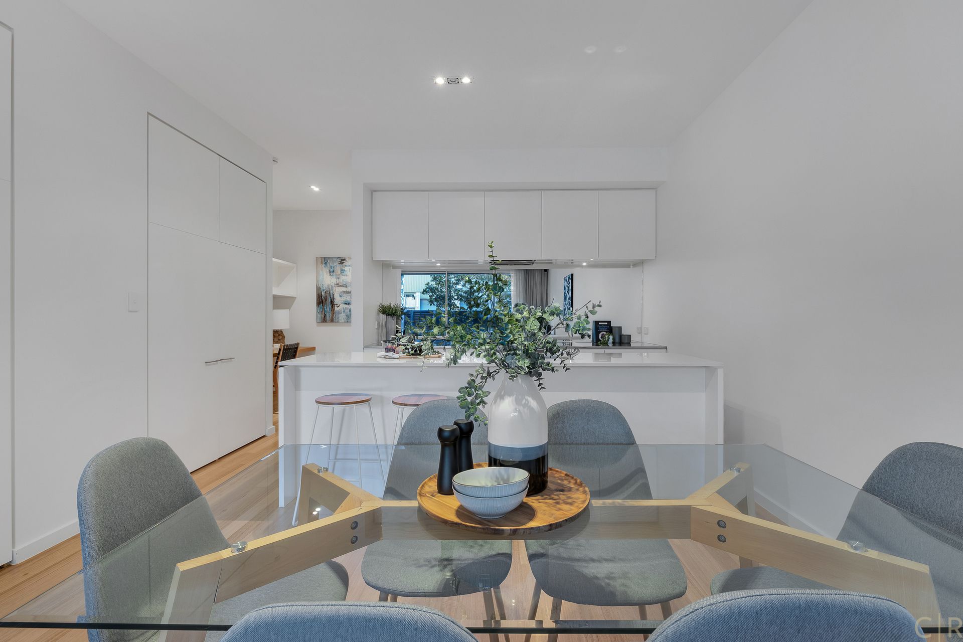 Downstairs you will enjoy a spacious kitchen with an island benchtop allowing you to face the lounge room during meal (or cocktail!) preparation, and a hidden butler's pantry and opportunity for an integrated fridge.