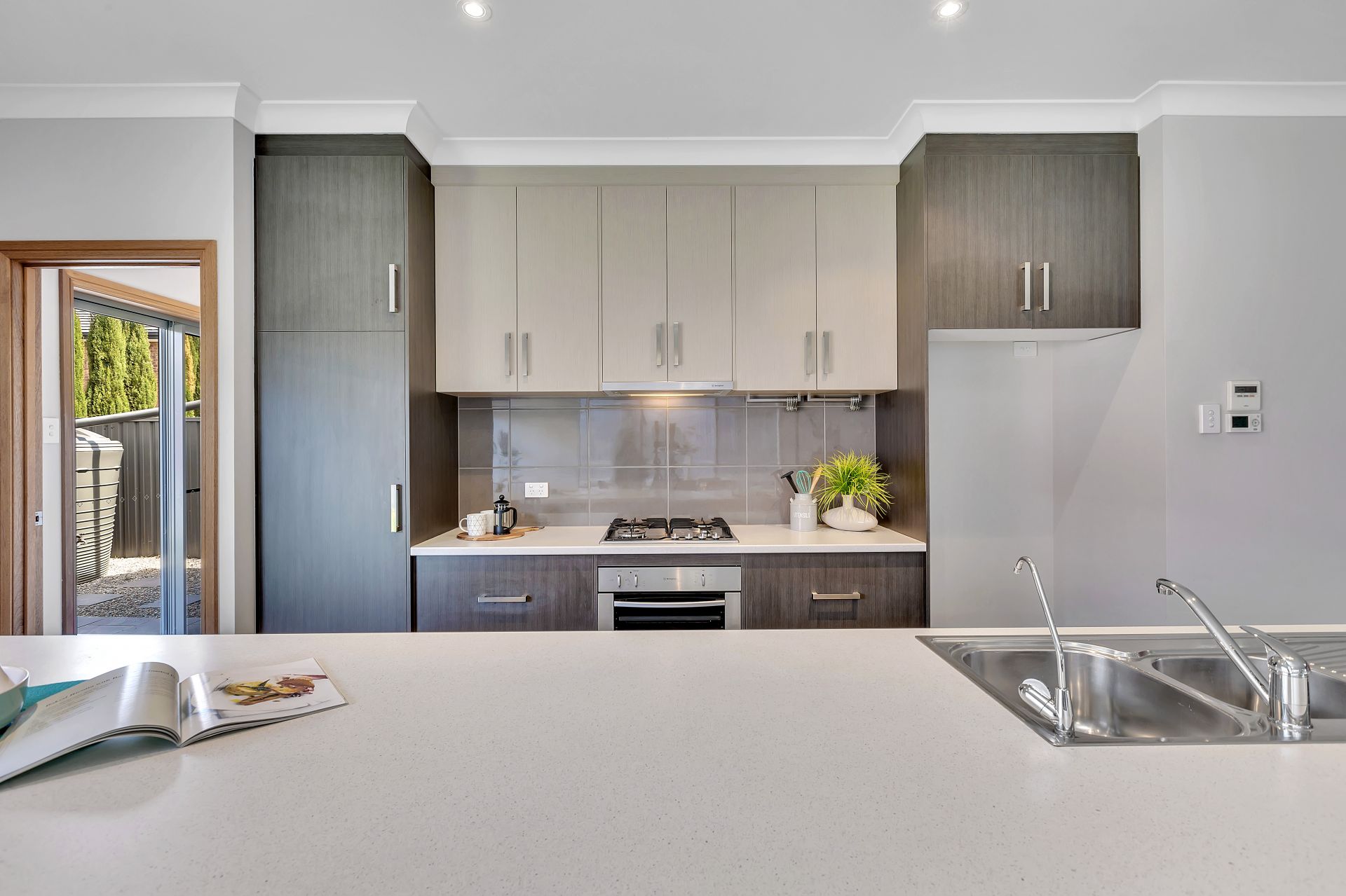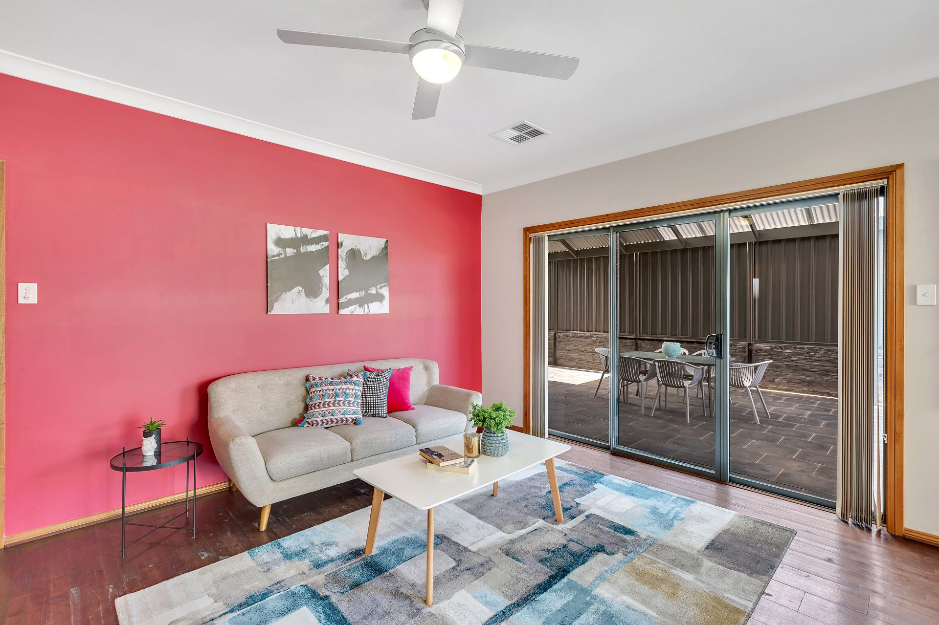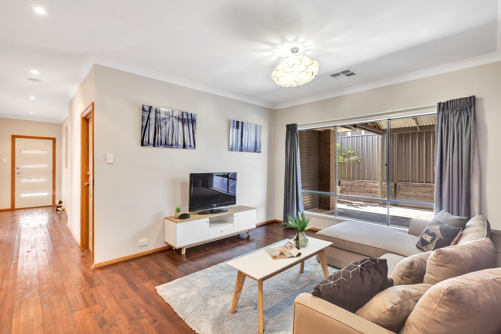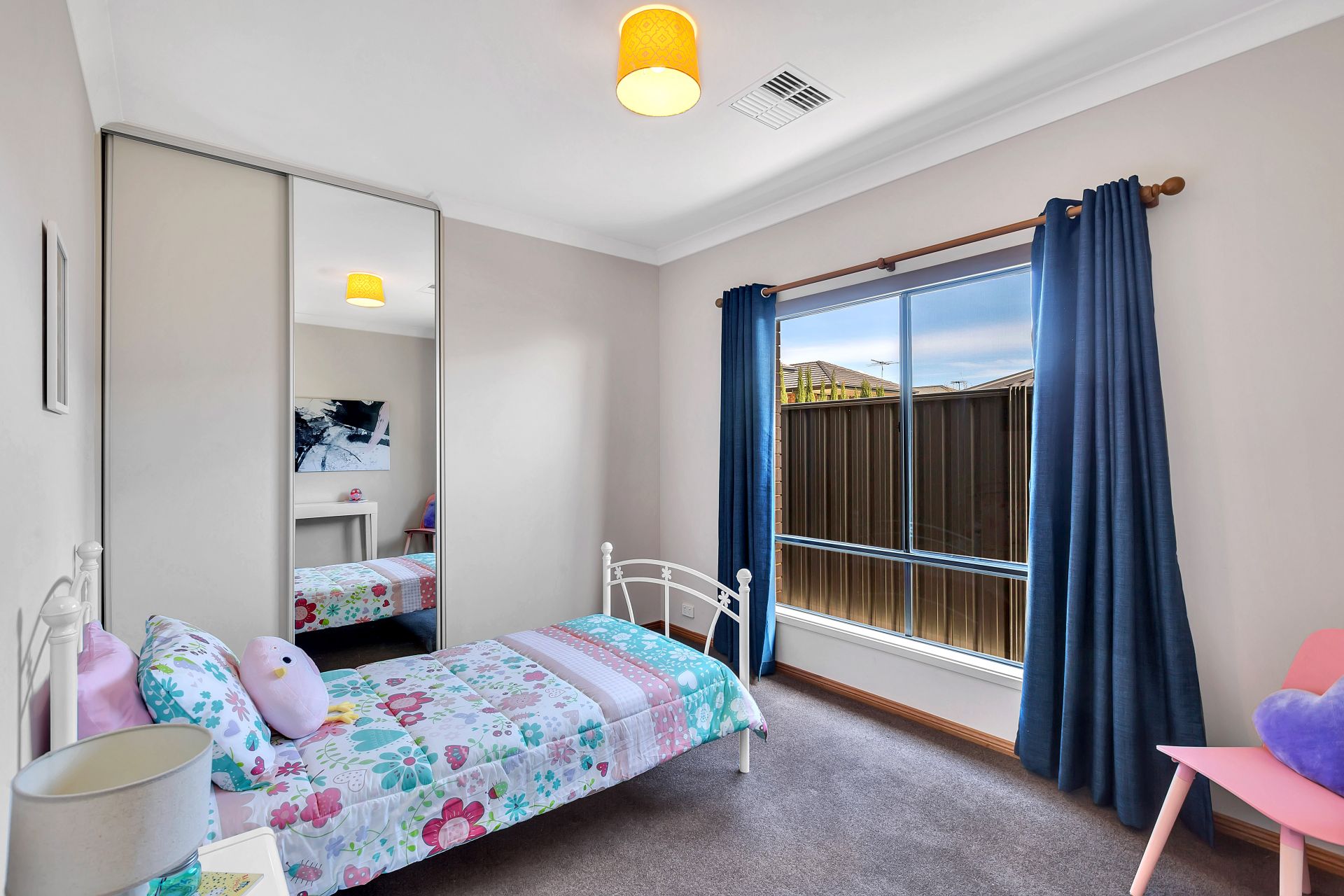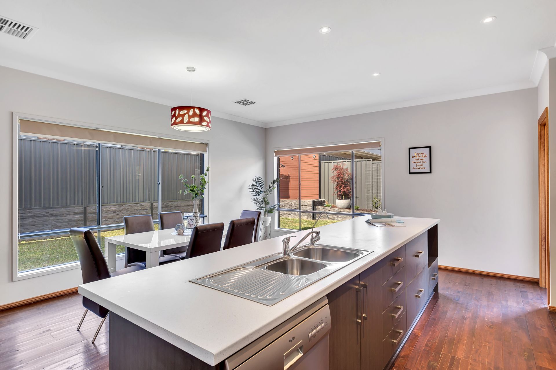Stepping outside, there is sliding door access to the outdoor entertaining, perfect for integrating the indoor entertaining to outdoors. A pitched pergola with retractable cafe blinds is large enough for outdoor seating and the trusty bbq. A grassed area is at the back of the yard for the kids to run around and play. There is a decked seating area overlooking the backyard with room for a cantilevered umbrella and a hidden sandpit will be a wonderful surprise for the kids.