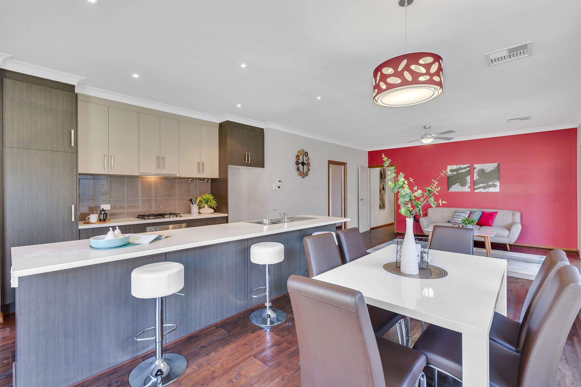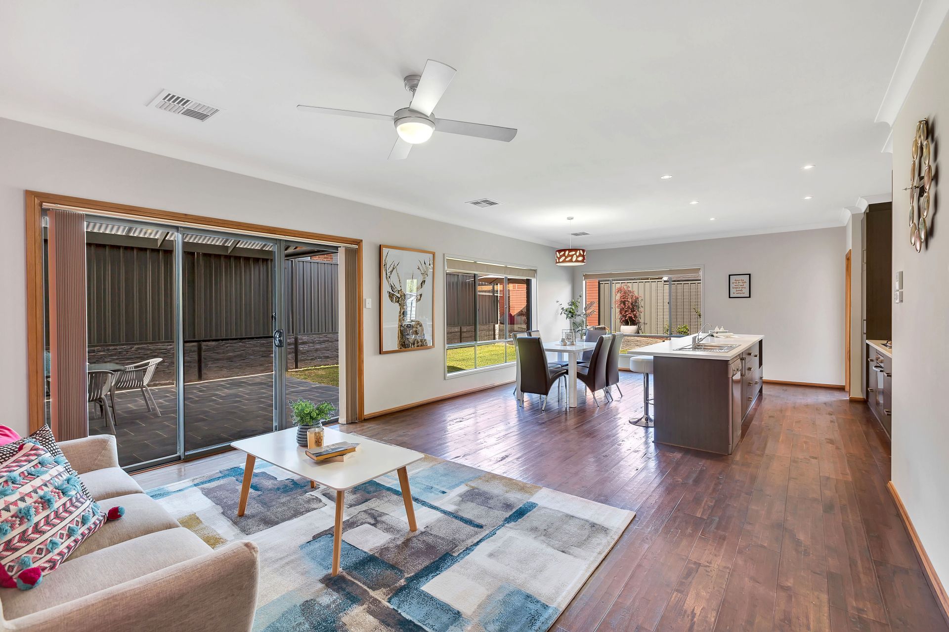 Moving inside this quality built Fairmont home, as soon as you walk through the door the distressed dark wood floating floors are a stand out feature of this home. You'll find this home has been thoughtfully designed to cater for added luxuries that you never knew you needed until now! The master bedroom comes complete with walk through his and her built in robes with plenty of hanging and folding space. An ensuite is accessed through the walk in robe and is beautifully tiled throughout. A ceiling fan provides comfort for those balmy summer nights. Bedrooms two and three are a great size both with floor to ceiling mirrored built in robes with both hanging and folding space. The main bathroom has a separate toilet, shower and vanity area for the busy household.
