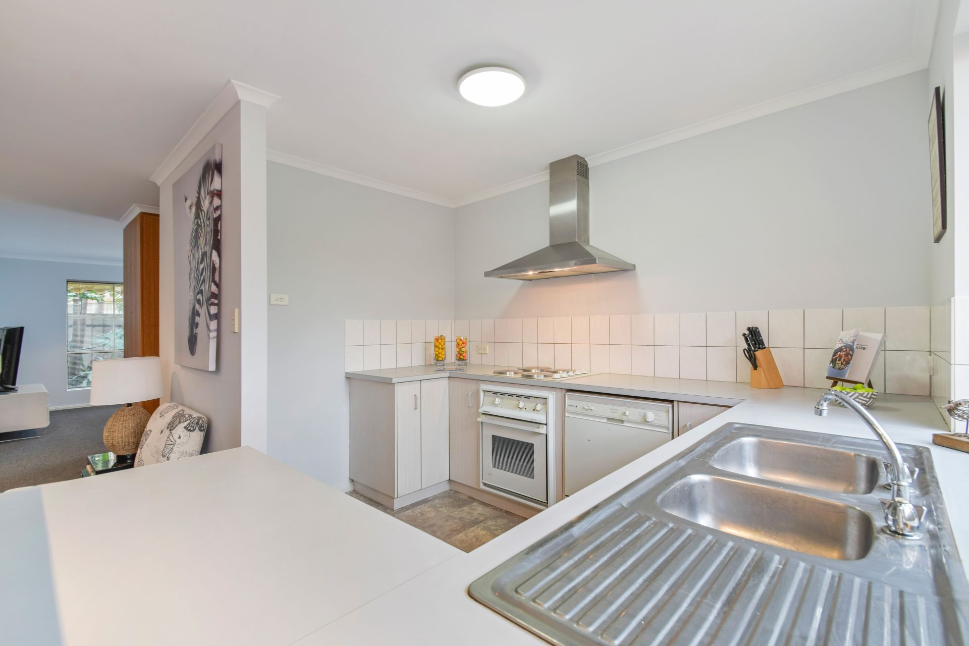 > The kitchen is well fitted with electric appliances, dishwasher, plenty of bench space and ample storage