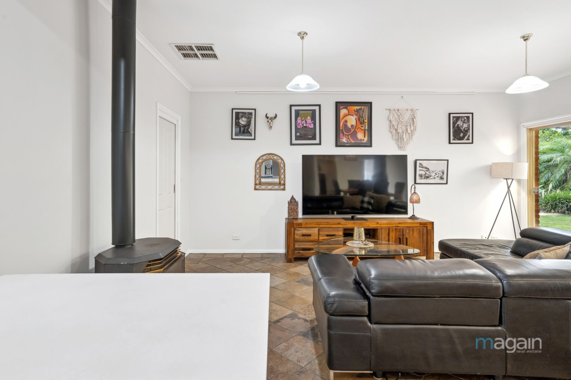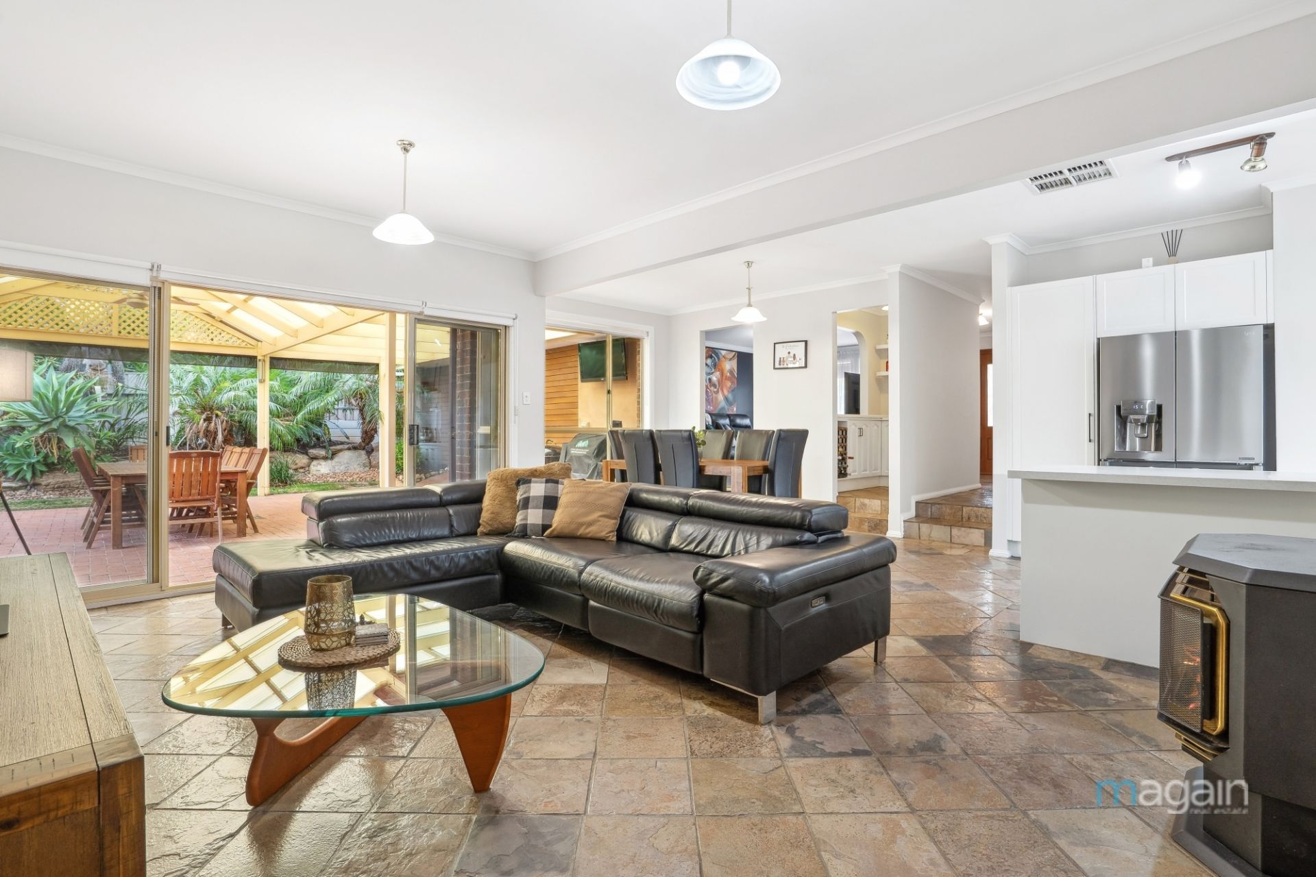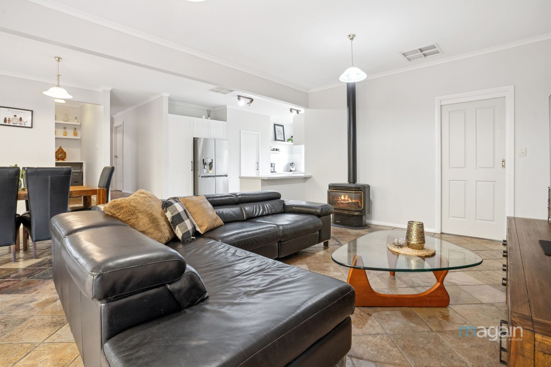Step inside to discover the elegance of the formal lounge room, an inviting space ideal for intimate gatherings or relaxing in comfort. The renovated kitchen is a standout feature, boasting sleek modern appliances, a dishwasher, ample bench space, and abundant storage-perfect for the home chef. Flowing effortlessly from the kitchen, the spacious open-plan family living and dining area serves as the vibrant heart of the home. Complete with gas combustion heating, it offers a warm and welcoming atmosphere, while the built-in bar off the dining area adds a sophisticated touch for entertaining guests.