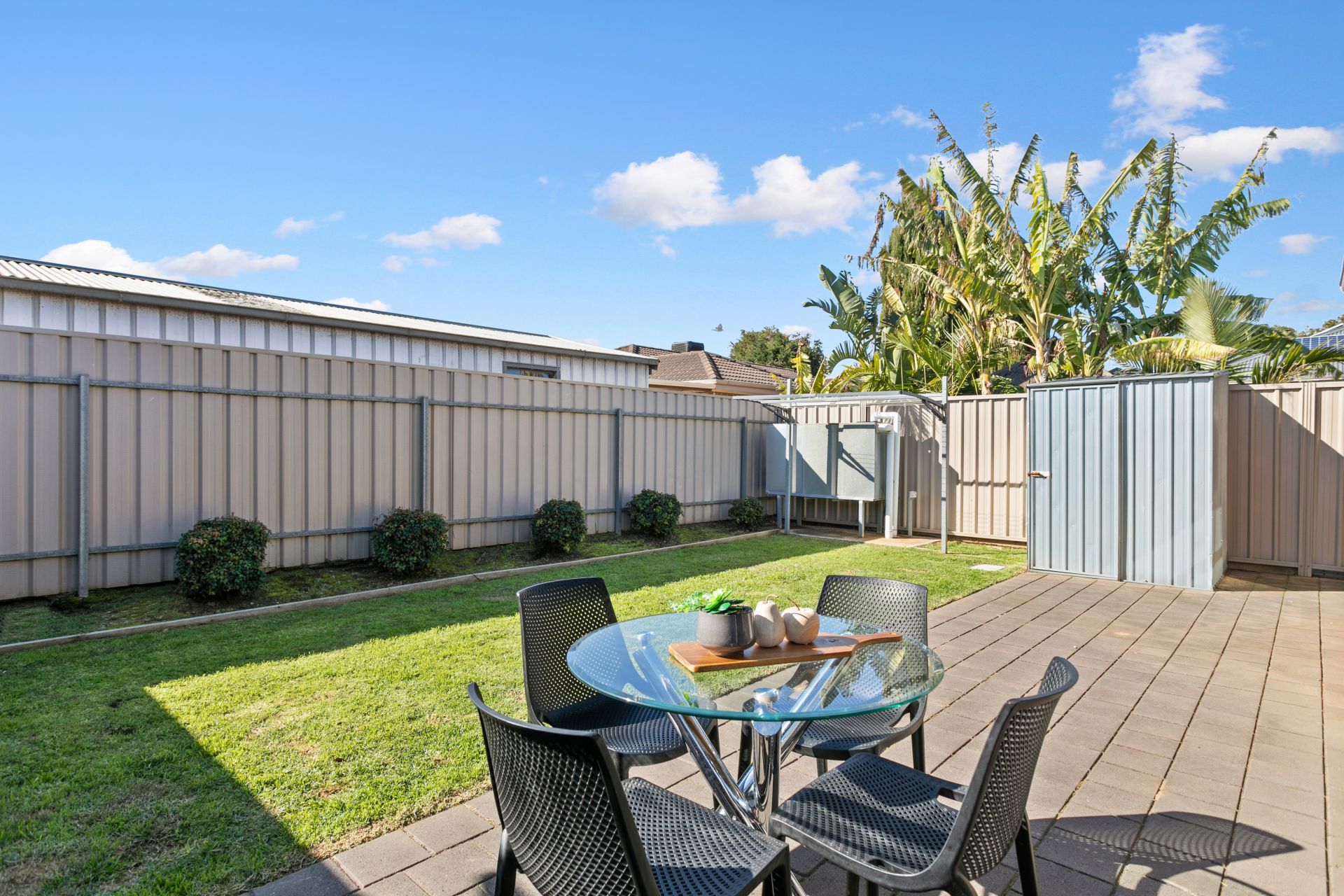 The benefits of this home continue into the backyard with paving to a low-maintenance garden and grassed area, so you're still able to enjoy that afternoon sun and satisfy your green thumb. A garden shed and side access to garage will ensure all your gardening and outdoor storage needs are accounted for.