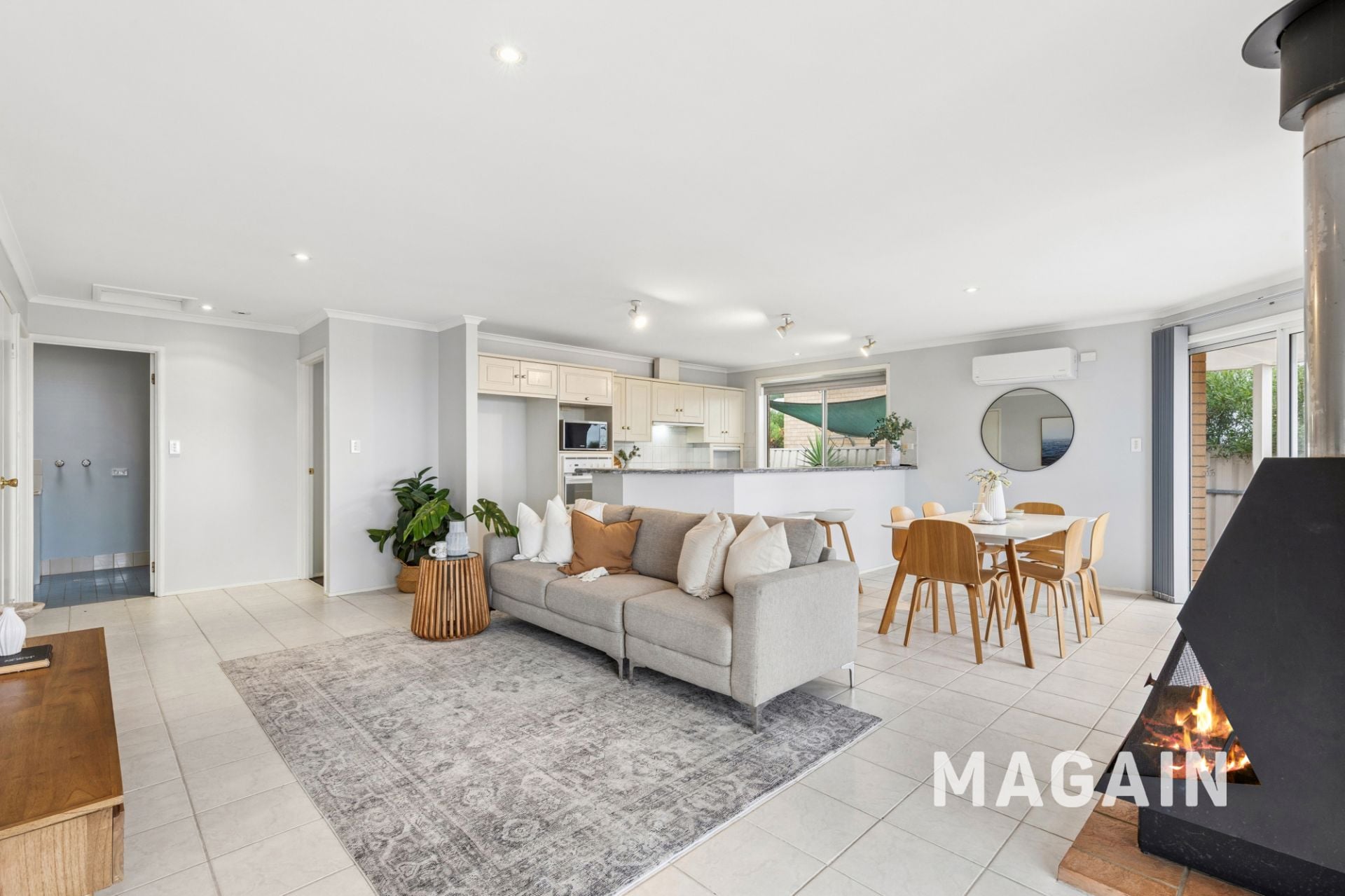 A second family bathroom/laundry combination adds convenience, along with a separate additional toilet. Comfort is assured year-round with a split system for heating and cooling, while a large real wood heater creates a warm and inviting atmosphere during the cooler months.