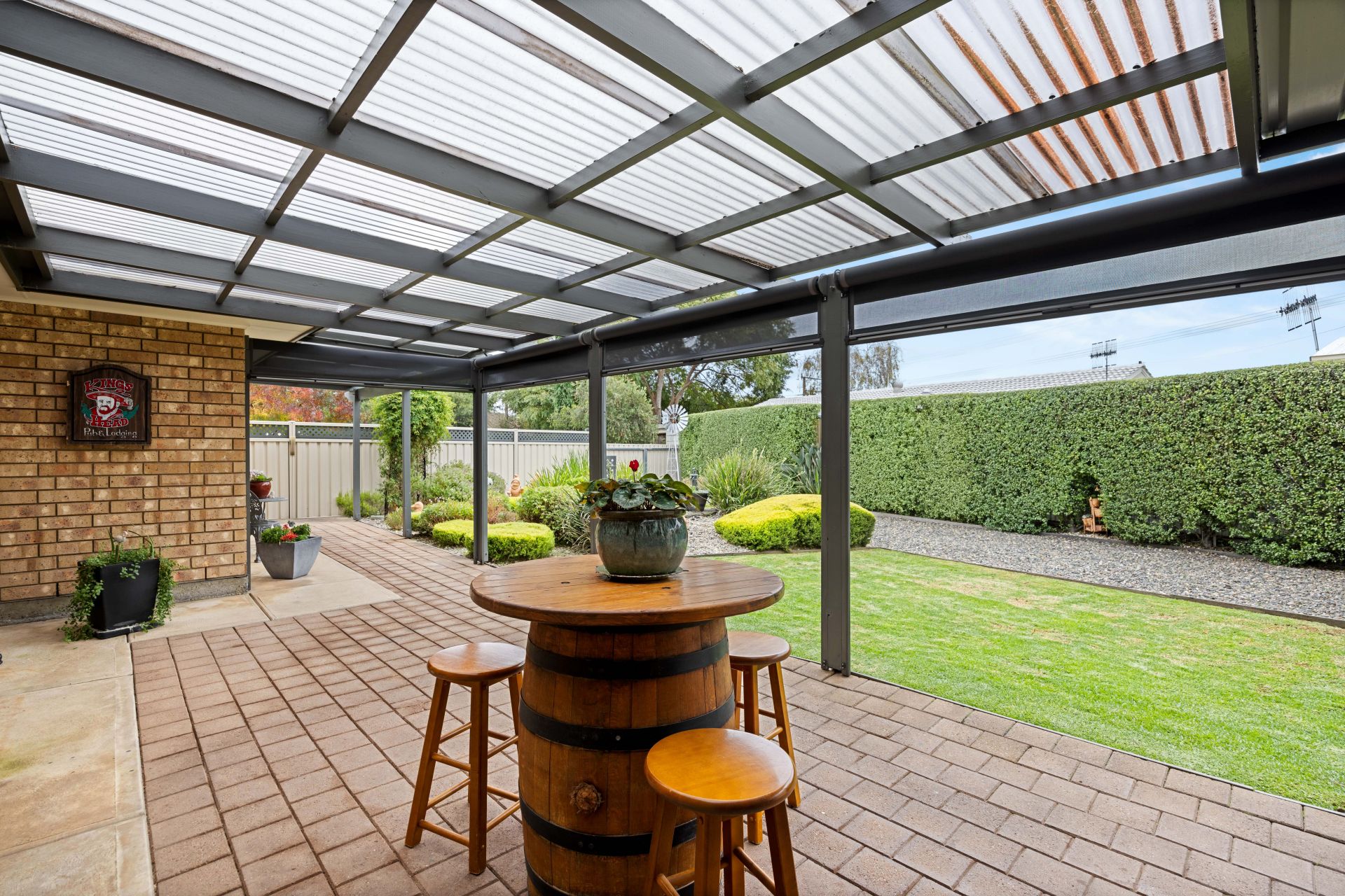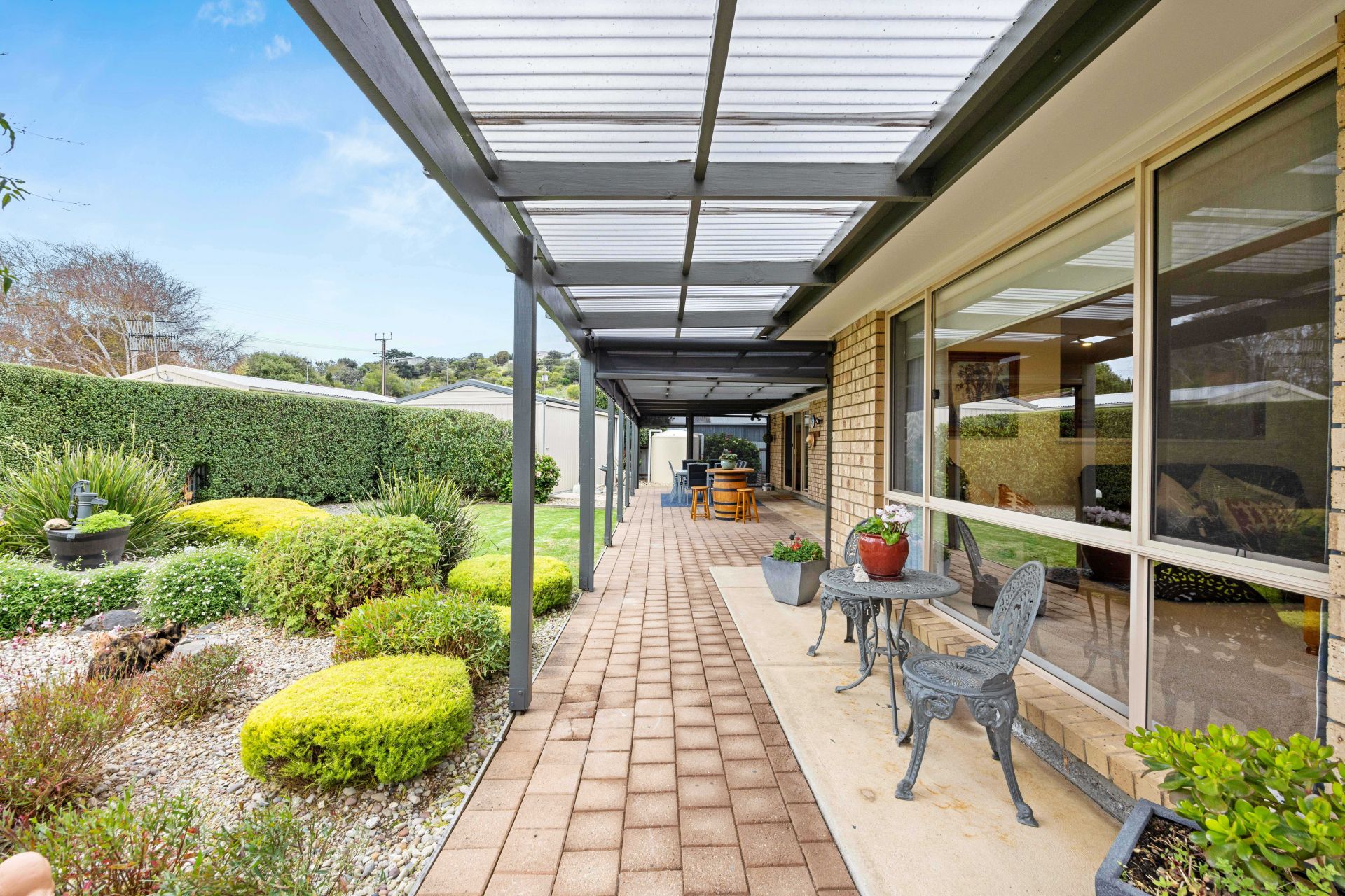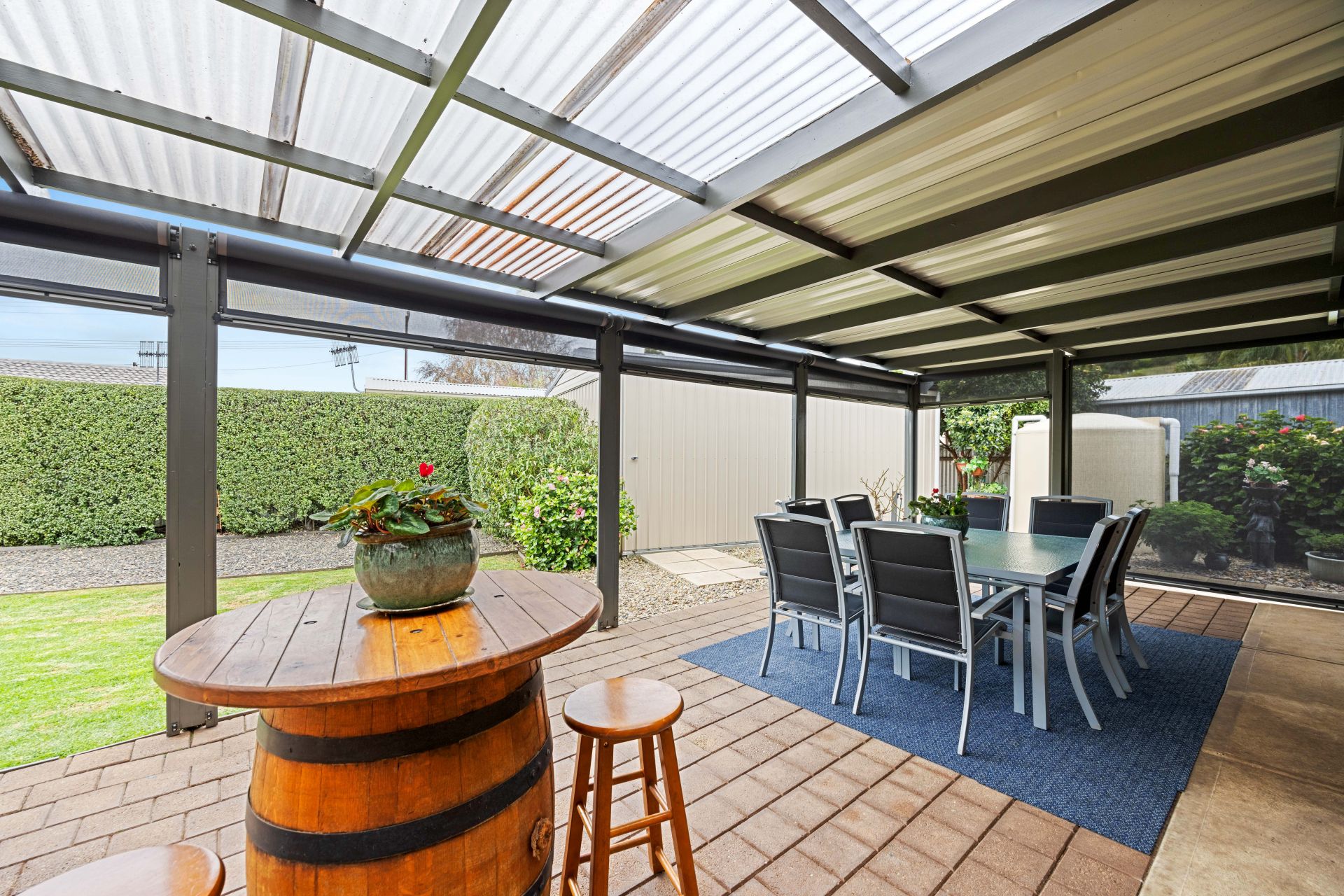 Just when you thought it couldn't get any better, it does! Set on a level block of around 785m² the outside is just as immaculate as the inside. Private and secure the rear yard offers beautiful low maintenance gardens with established plants and shrubs, while the hedge on the boundary is a feature on its own. The paved entertaining area spans the entire length of the home and can be used all year round thanks to the 'pull down' café blinds, making it the perfect space for Sunday barbeques with friends, large family gatherings or a tranquil spot to sit and watch the kids/grandkids run and play on the lawn area nearby. Positioned behind gates is a gravel driveway offering a secure space to store your recreational vehicles and the powered workshop is ideal for those who love to tinker around or someone who needs a place for their projects.