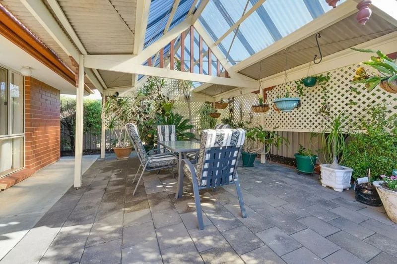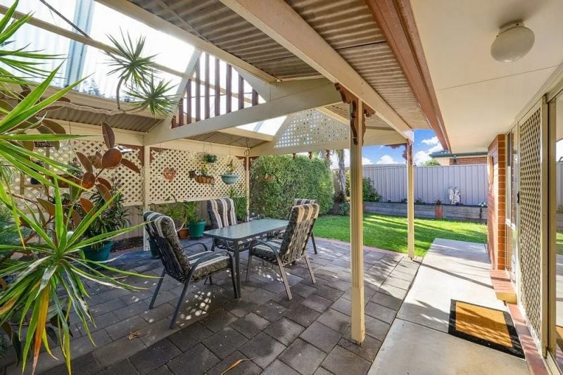 Tranquil rear alfresco area, ideal for outdoor dining and relaxation