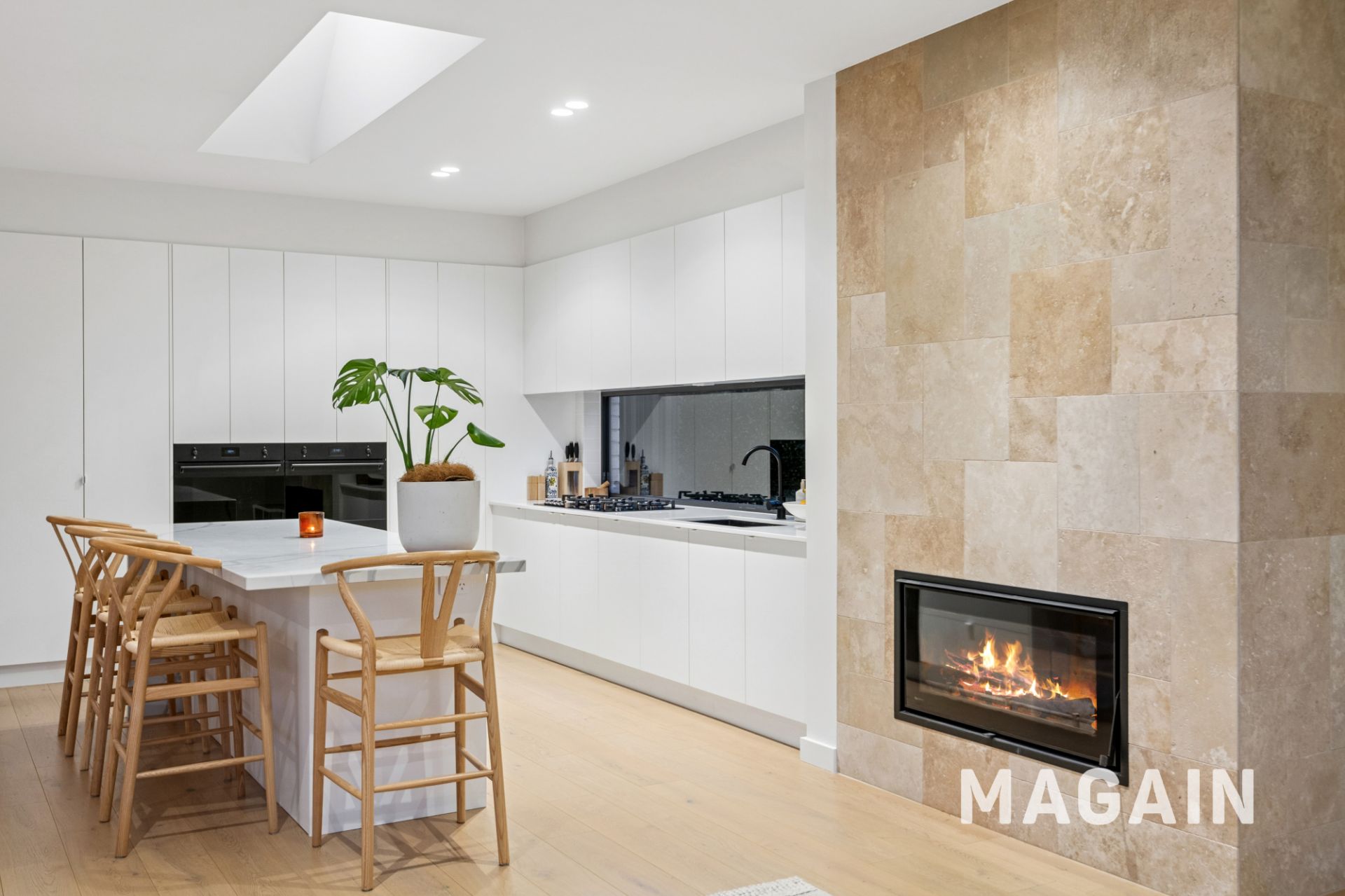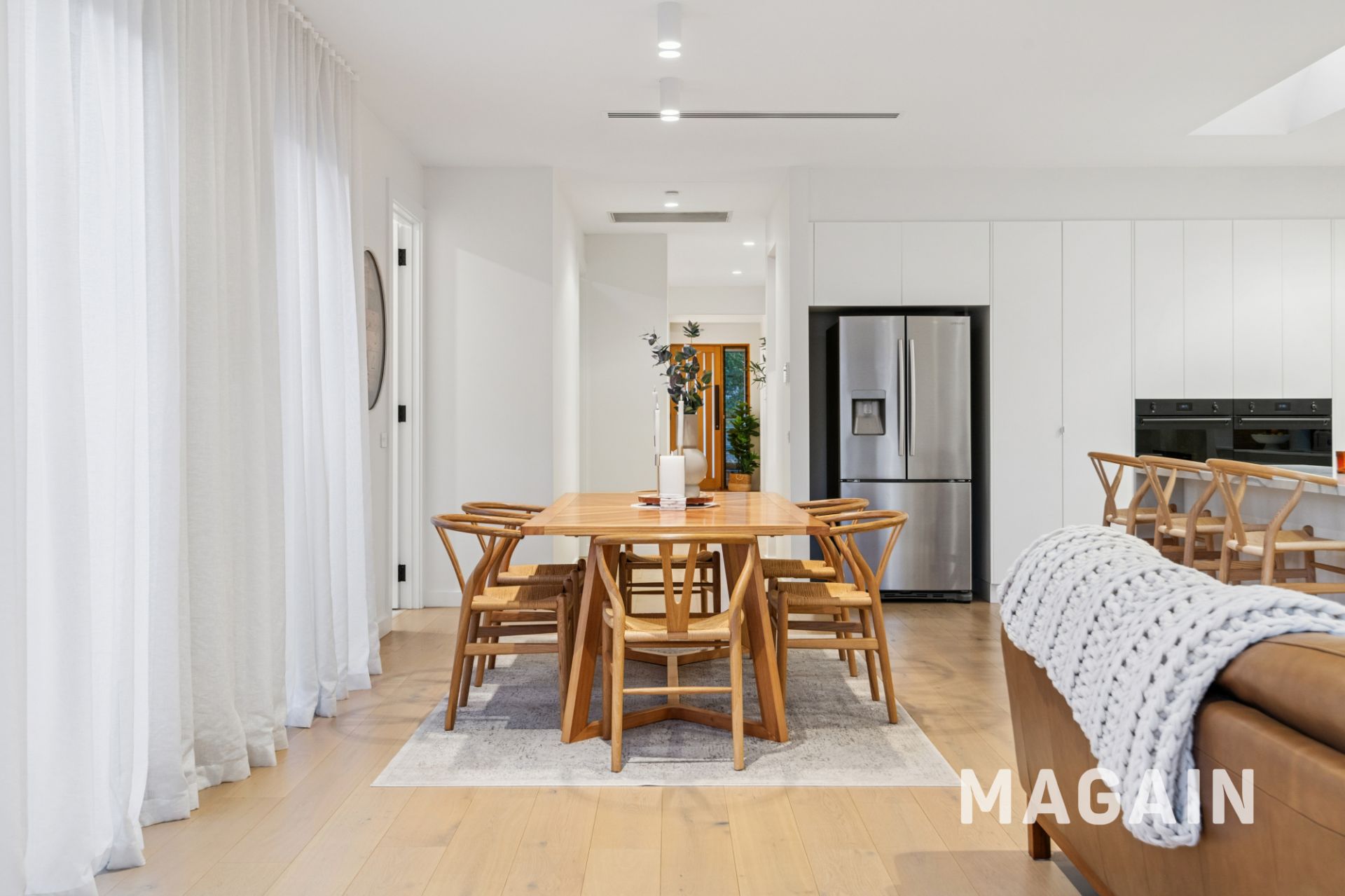 From the street, the home's striking design makes an immediate impression with its stone feature wall, exposed aggregate driveway, panel lift door and low-maintenance natural plantings. Step through the impressive tiled entry porch with a feature sandstone wall and oversized timber door to discover soaring 3m ceilings and beautiful hard timber floors that set a tone of understated sophistication.