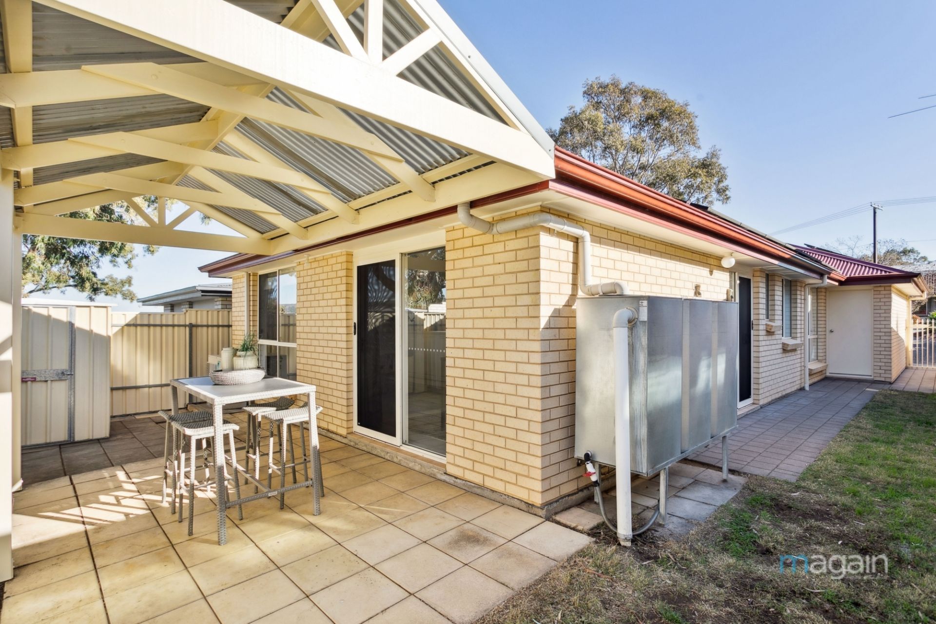 Outside, a spacious pergola-covered entertaining area and a grassed yard are perfect for gatherings and provide ample space for kids and pets to play.