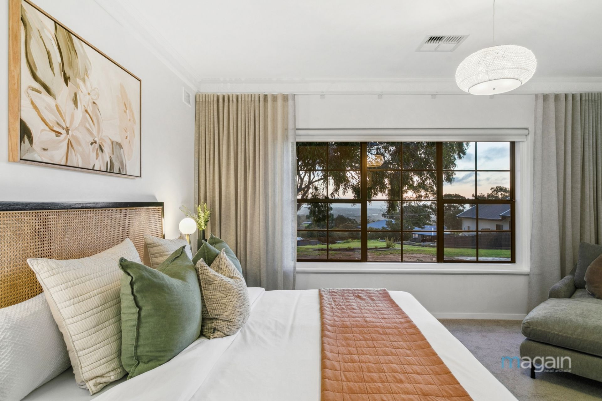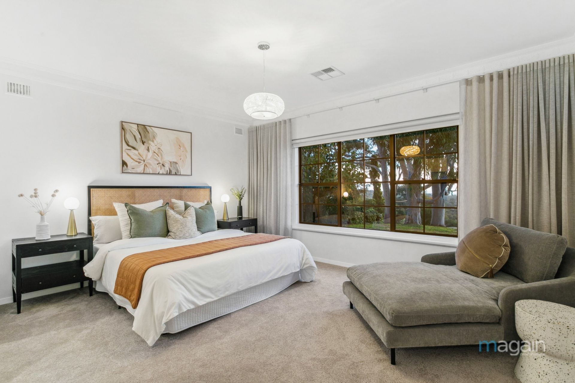 Step inside to discover a thoughtfully designed floorplan, recently refreshed with neutral tones and new carpets throughout. The home features four spacious bedrooms, each exuding its own charm. The main bedroom, located at the front, showcases large picture windows that frame stunning views, along with a walk-in robe and a private ensuite for added convenience. Bedroom 3 includes built-in storage, while the remaining bedrooms are versatile, ideal for growing families or as home offices, and are serviced by a well-appointed main bathroom with a separate toilet.