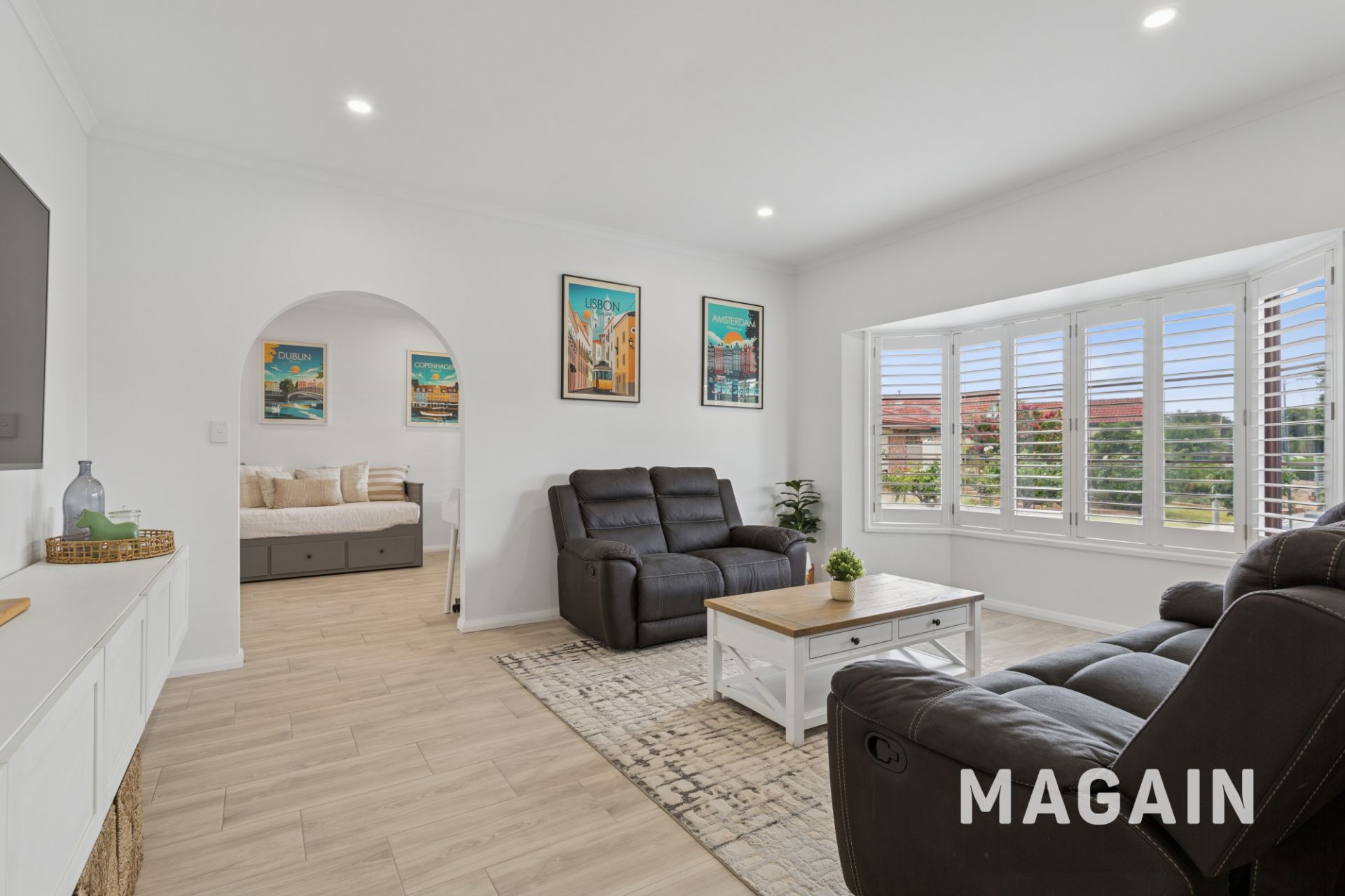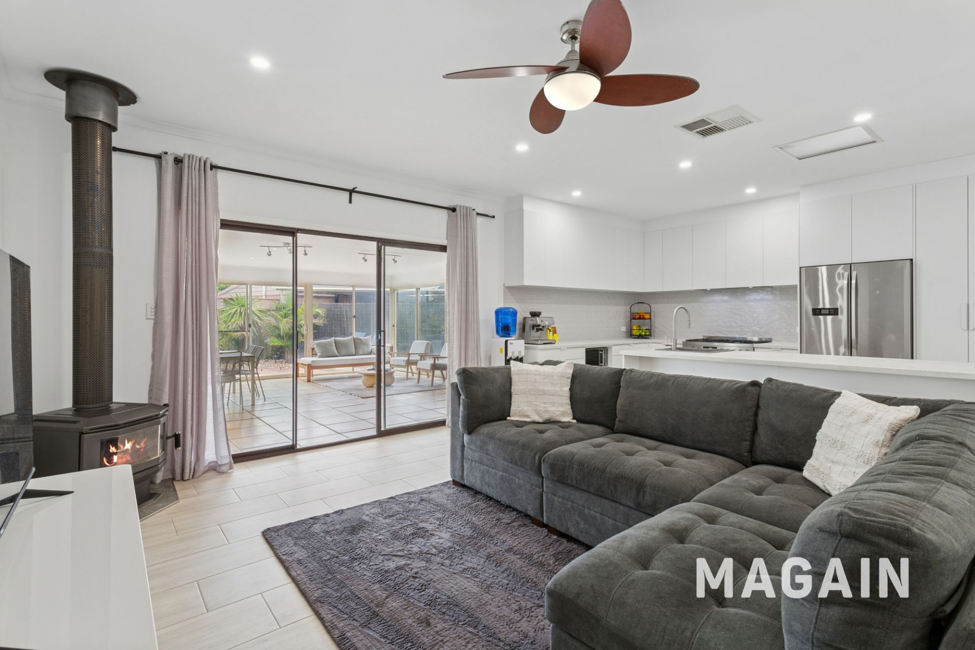 At the heart of the home sits the beautifully renovated kitchen, designed to impress with its 900mm oven, dishwasher, generous storage and expansive bench space. Overlooking the family living zone with its warm combustion fireplace, the kitchen connects effortlessly to the adjacent meals area, creating a welcoming hub that caters equally well to relaxed day-to-day living and effortless entertaining.