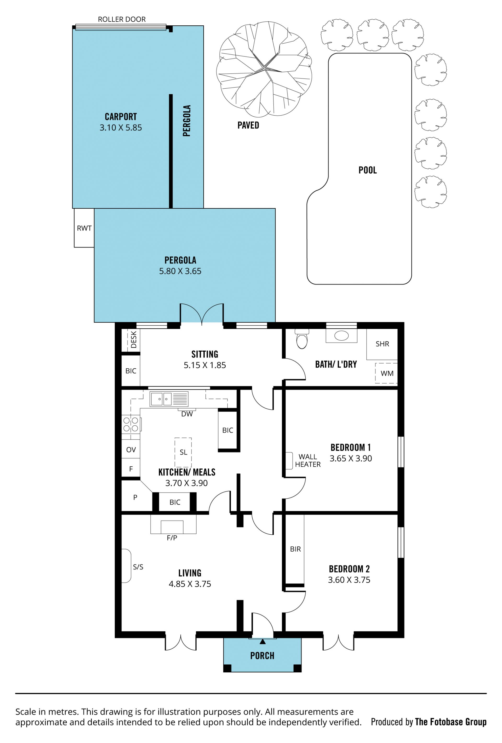 > private solar heated in-ground pool, serviced fortnightly in summer and monthly in winter