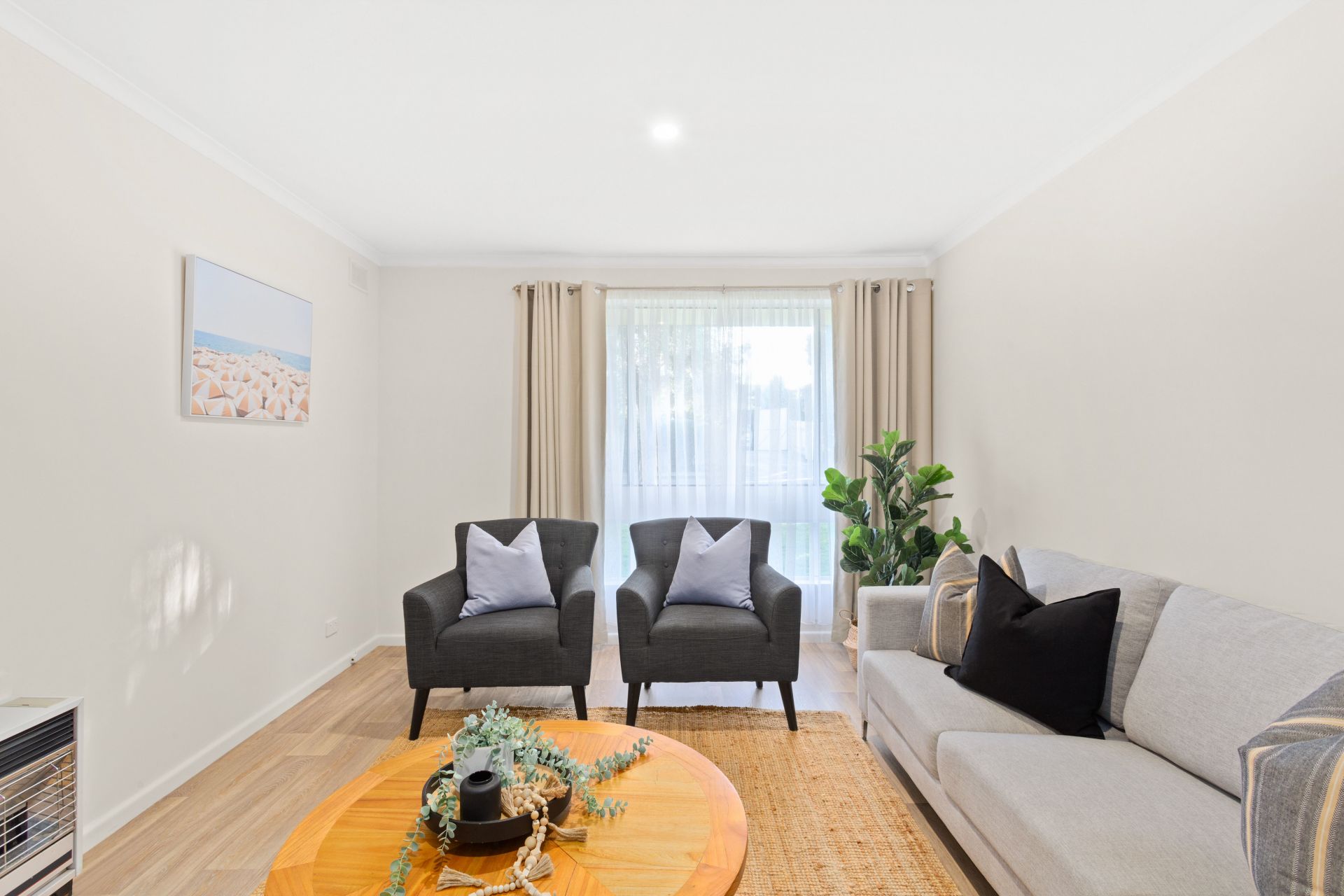 Beautifully landscaped gardens welcome you, and as you walk through the front door, you'll be amazed by the amount of light that flows through the flexible layout of this home. To the right is the sprawling lounge room, overlooking the front garden through a large window with a northerly aspect, it features easy-care lino flooring and a gas heater, where you can curl up with a cup of tea and a good book. The open plan design of the functional kitchen and spacious meals area creates a space where family and friends can gather to enjoy delicious food and make lasting memories, boasting a gas oven and cooktop, ample bench space and plenty of cupboard storage. Offering three bedrooms with new plush carpet underfoot and built-in robes for storage, all the bedrooms are serviced by the central bathroom fitted with a step-in shower, a bathtub, a brand-new vanity and the convenience of a separate toilet to accommodate busy households.