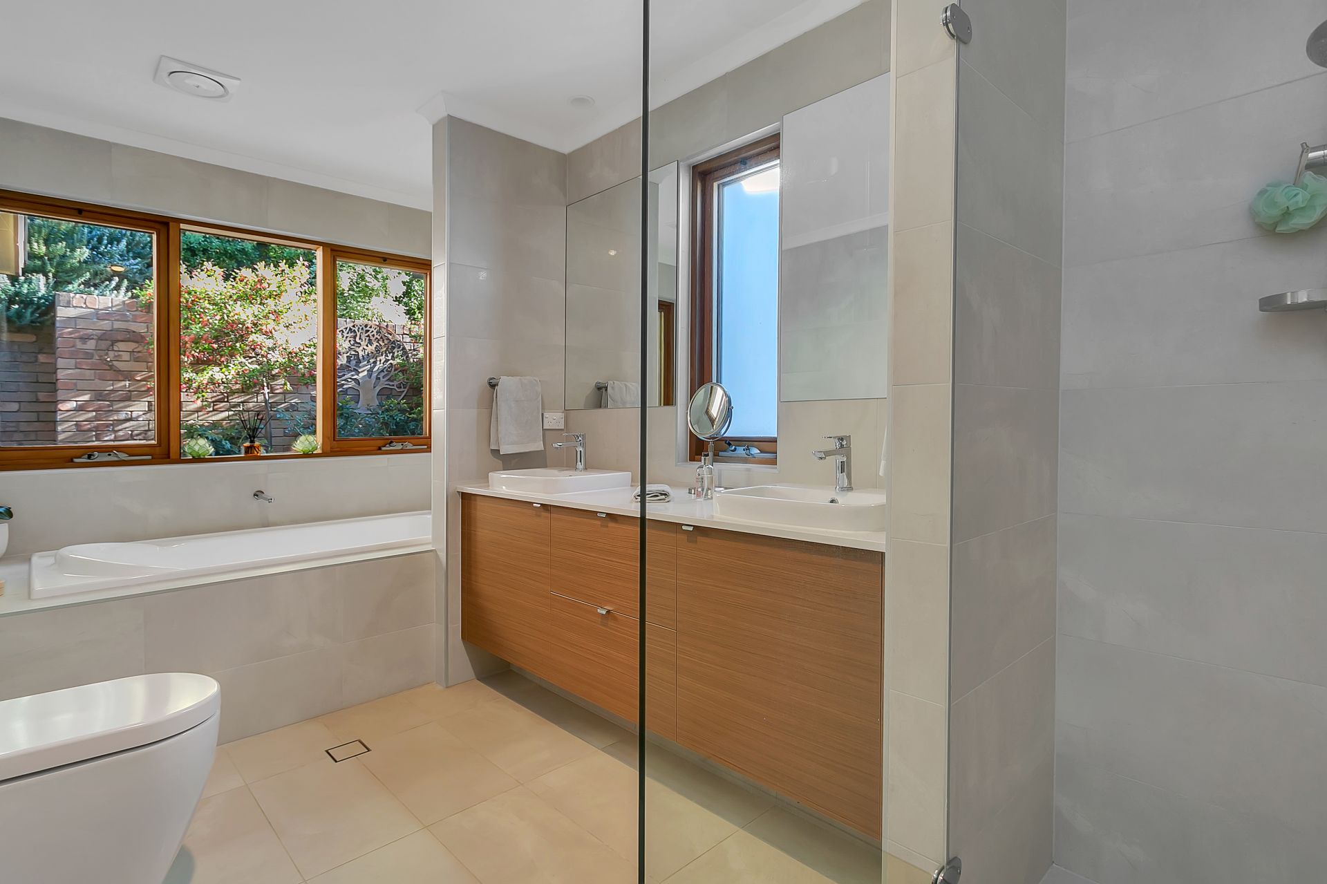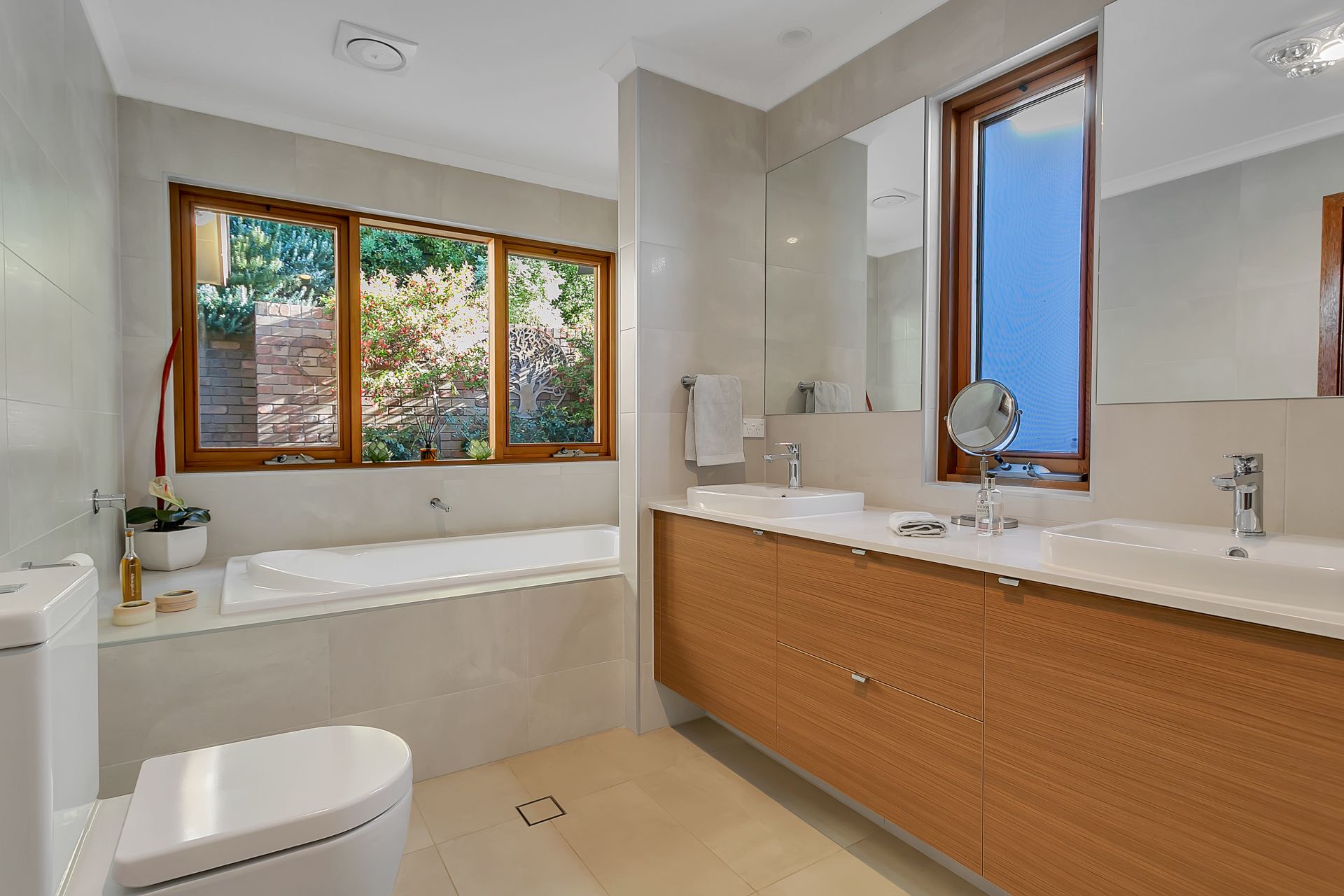 There are three double bedrooms with robes plus study or 4th bedroom, a spacious new ensuite bathroom with spa bath and double vanity. You can even shower with a view! The main bathroom, separate WC and laundry have also been fully renovated with outstanding tasteful quality.