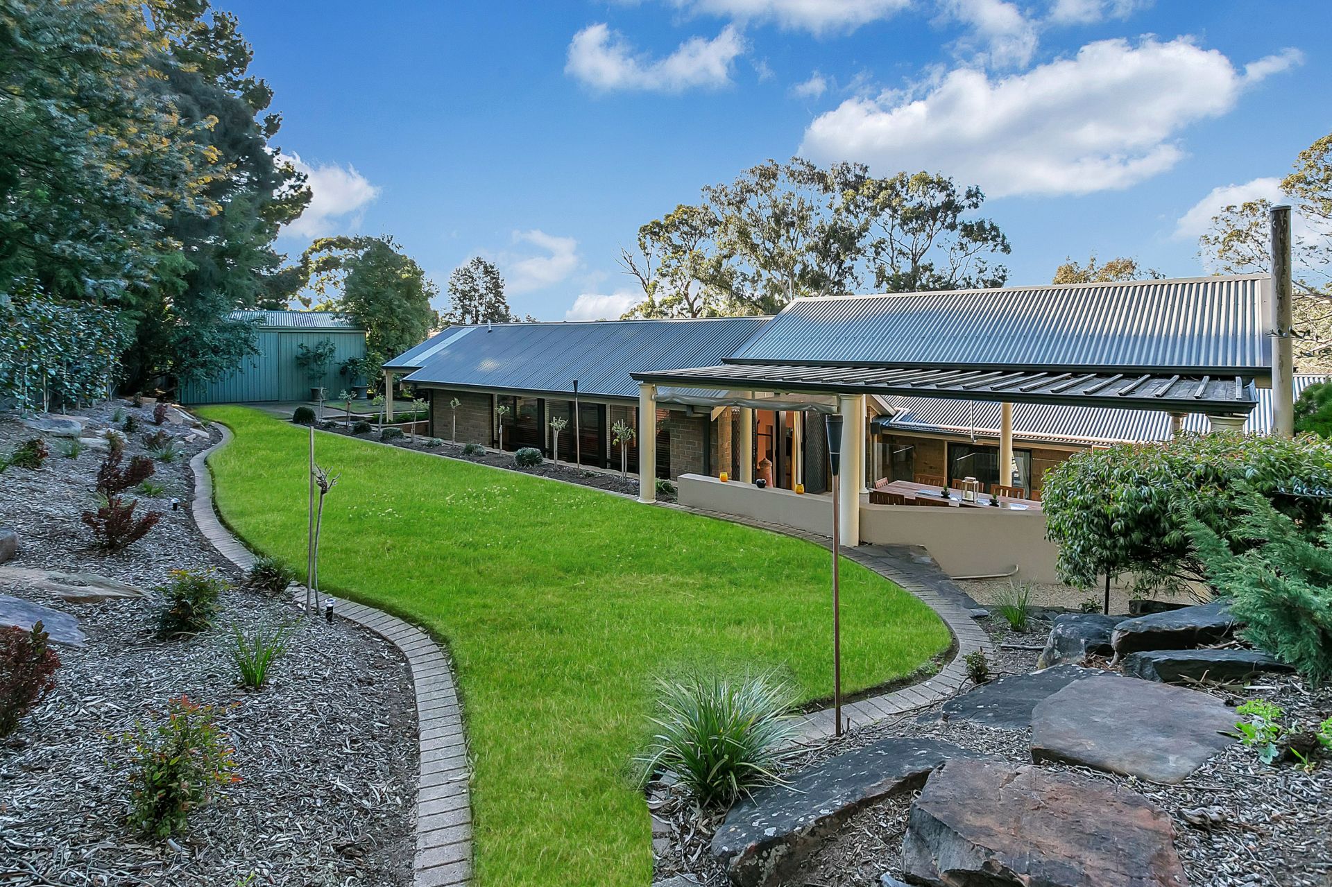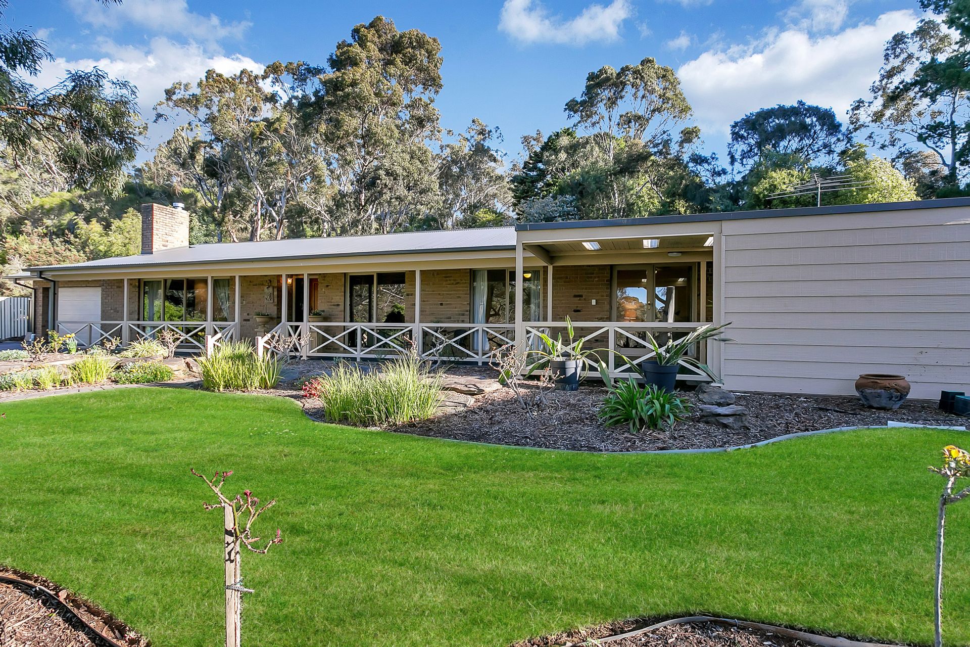 Being on the high side of the road, this delightful home is sited to take advantage of the peaceful outlook to the hills and for maximum privacy.