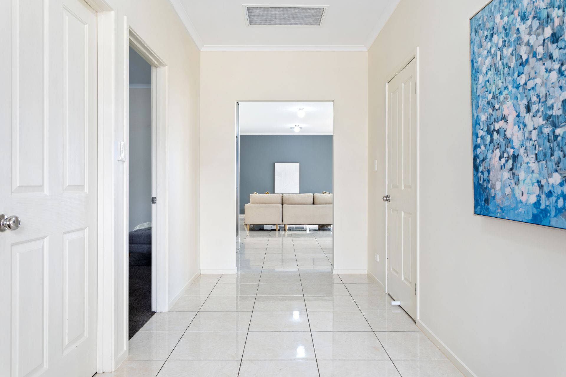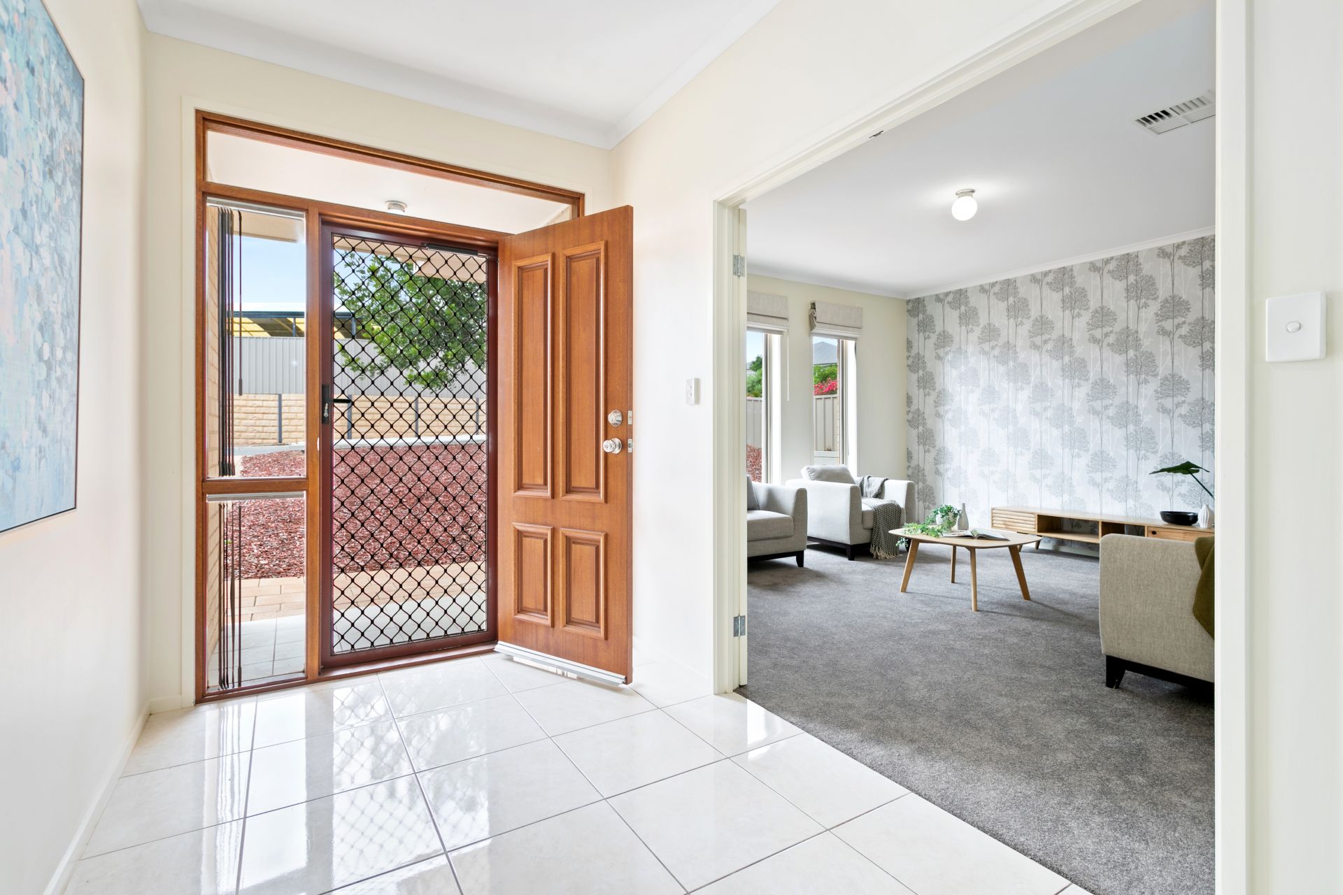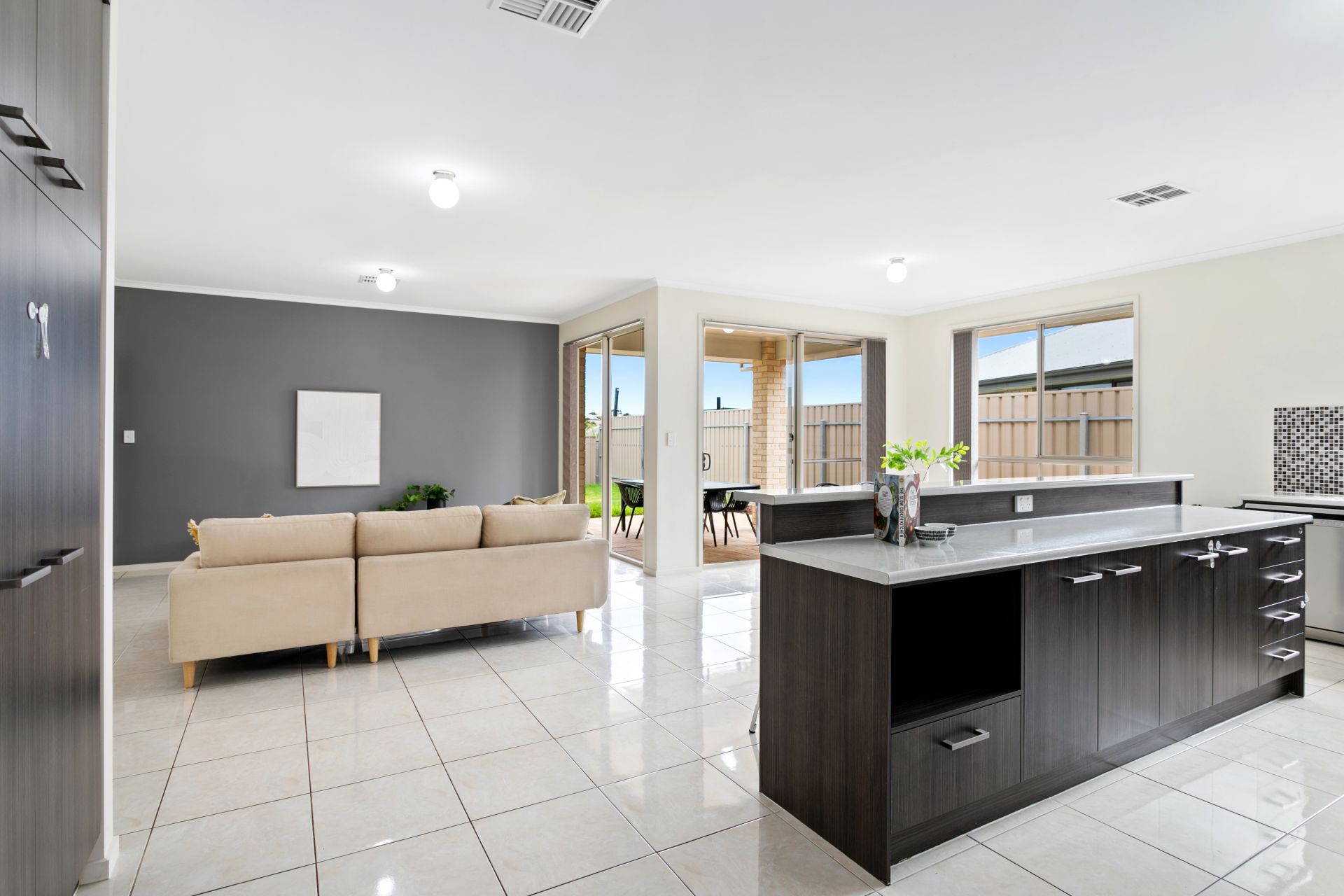 Entering the home, you’ll be delighted to discover a wide entry hall with glossy tiled floors and on your left is a large formal lounge room with double doors, presented in neutral tones while one wall features stylish wallpaper; or utilise this room as a home theatre - grab some popcorn and enjoy watching movies with the family. Comprising of three good sized bedrooms, the substantial master suite features a walk-in robe and a private ensuite bathroom with shower, vanity and toilet, while bedrooms two & three both have built-in robes. The family bathroom is a three-way layout, servicing the bedrooms and living areas with an open vanity area, separate toilet plus a separate shower & bathtub – to make the morning routine a breeze. A well-sized laundry with rear yard access and built-in cupboards provide ease for the domestic duties.