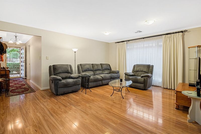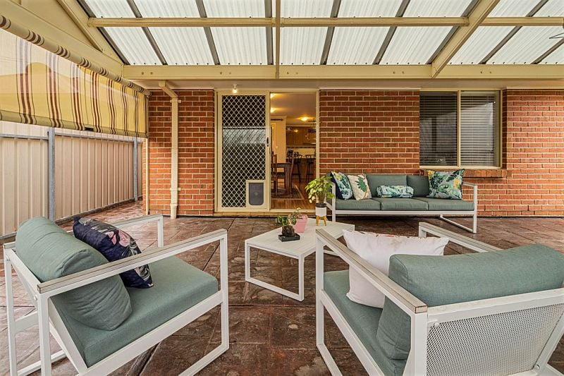 Set on a manageable allotment of around 375m? the gardens have been designed for a relaxed, easy living lifestyle. The stunning pitched roof pergola is complete with caf? blinds all round so you can enjoy entertaining no matter what the weather is doing, and you will be the envy of your family & friends as you host bbq's, parties and outdoor dining - in style! A second entertaining / courtyard area to the side of the house has a Brickworx feature wall and a shade sail. The double garage, with automatic panel lift doors, offers secure internal access to the home and another roller door allows access to the backyard. Secure and low maintenance, the gardens feature a small patch of artificial lawn plus mature shrubs & plants.