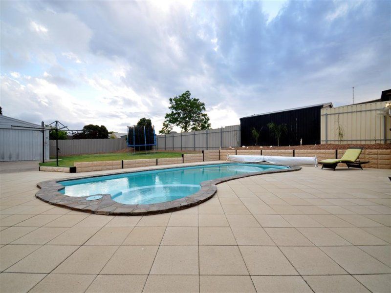 This four bedroom family home will surprise anyone walking out to the huge pitched outdoor entertaining area with paving continuing to a beautiful inground swimming pool. Overlooking a lovely big grassy yard for the kids to play and a big double shed.