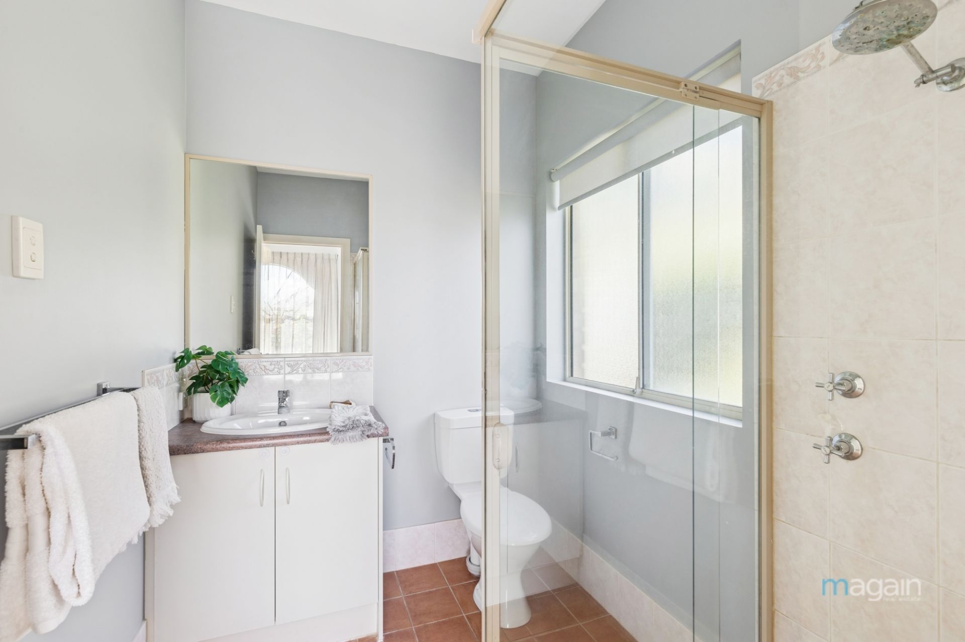 At the front of the home, the master bedroom offers a peaceful haven complete with a walk-in robe and a private ensuite. Bedrooms two and three are both well-sized and feature built-in robes, making them ideal for children, guests, or a home office. These rooms are serviced by a centrally located main bathroom, which includes a separate toilet and is conveniently positioned near a dedicated linen press and hallway storage.