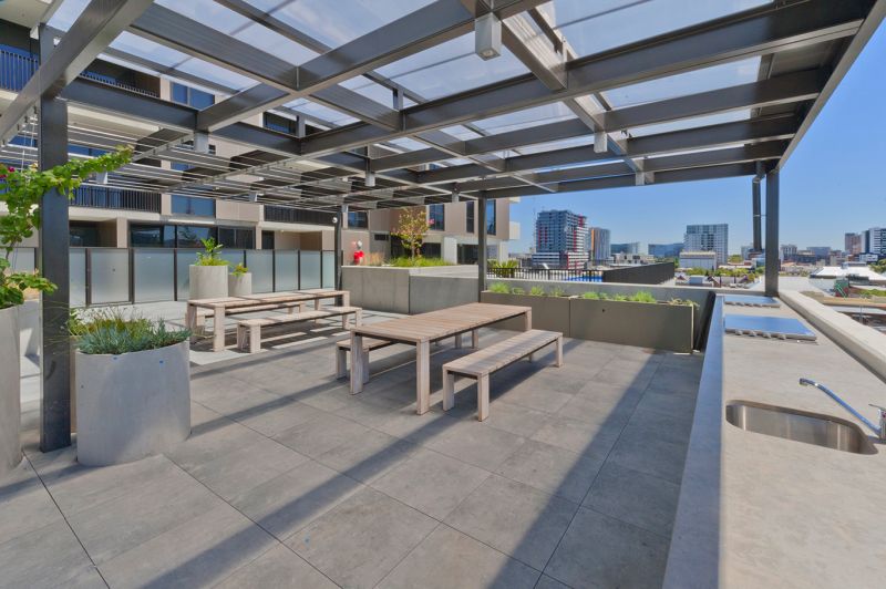 A sixth floor rooftop space transforms into a Sky Garden with stunning views over the city, 440sqm outdoor kitchen with timber tables and seating, viewing ledges, 17 metre lap pool, 60sqm metre gym.