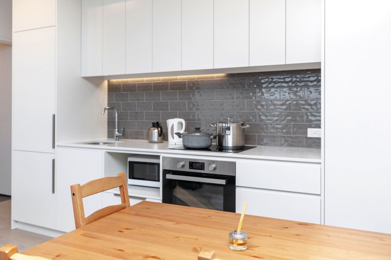 Designer kitchen with stone tops & integrated Dishwasher and Fridge