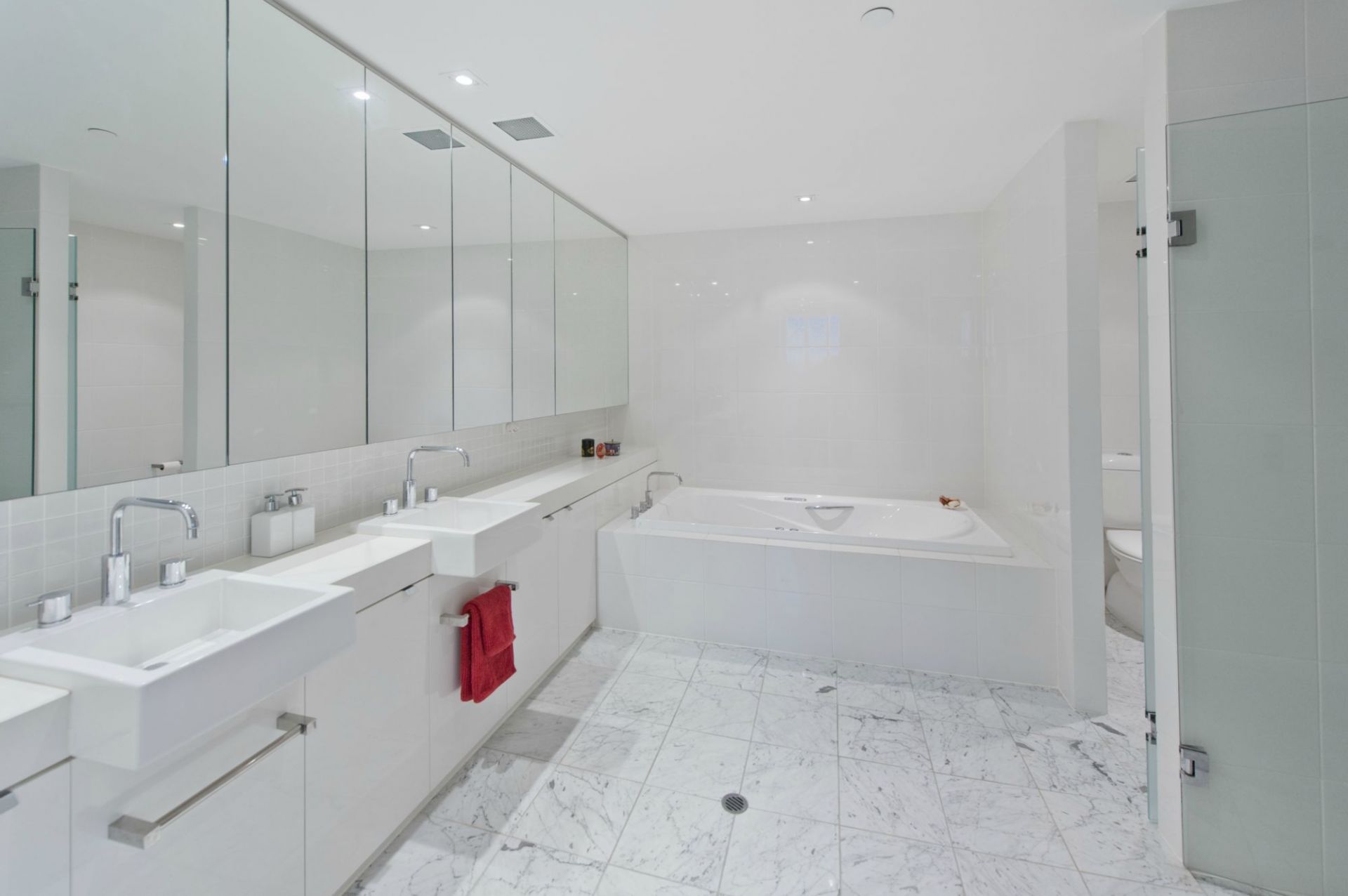 2.5 elegant bathrooms with sparkling floor to ceiling tiling, featuring spa bath in ensuite and double sized showers