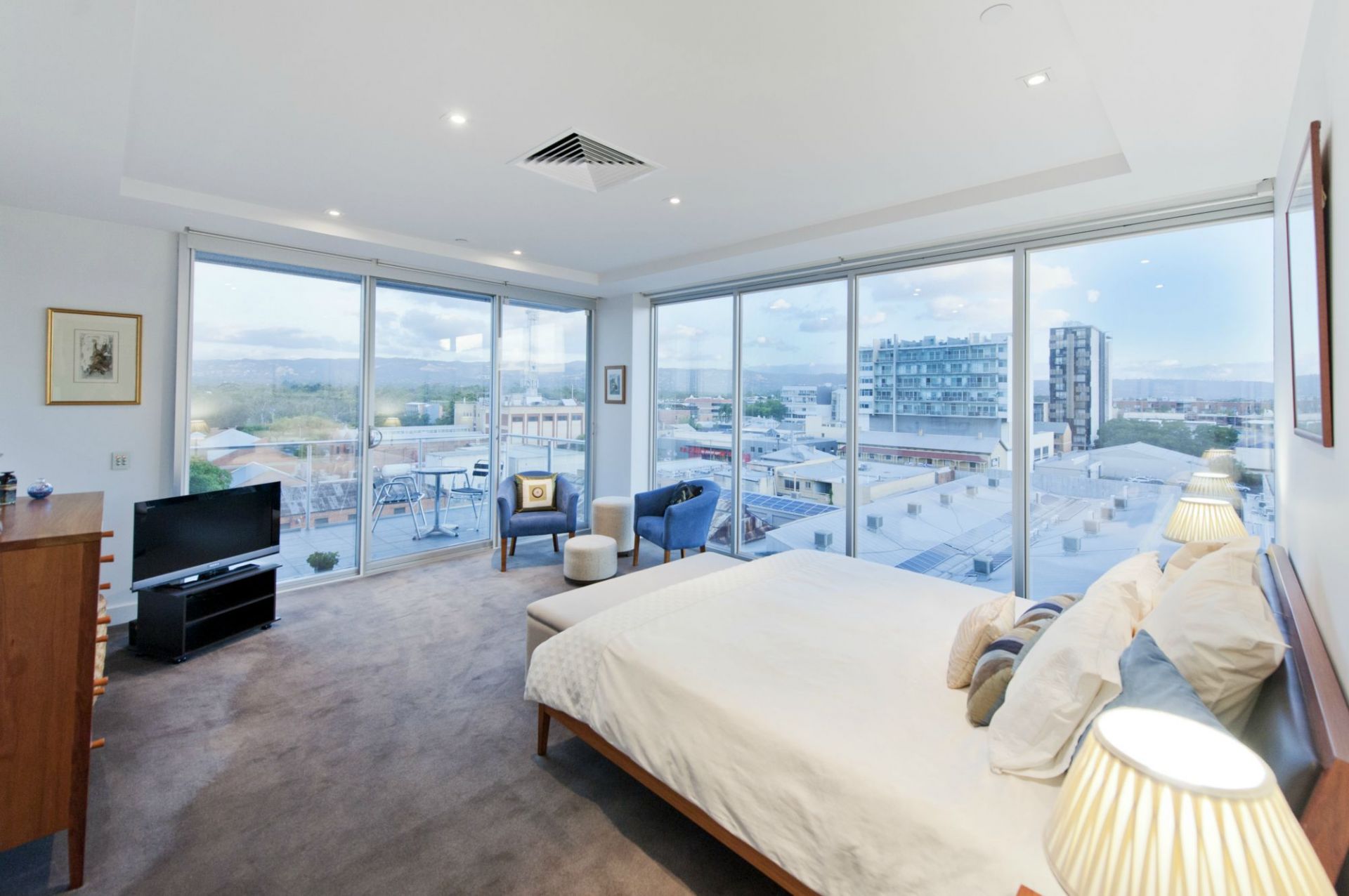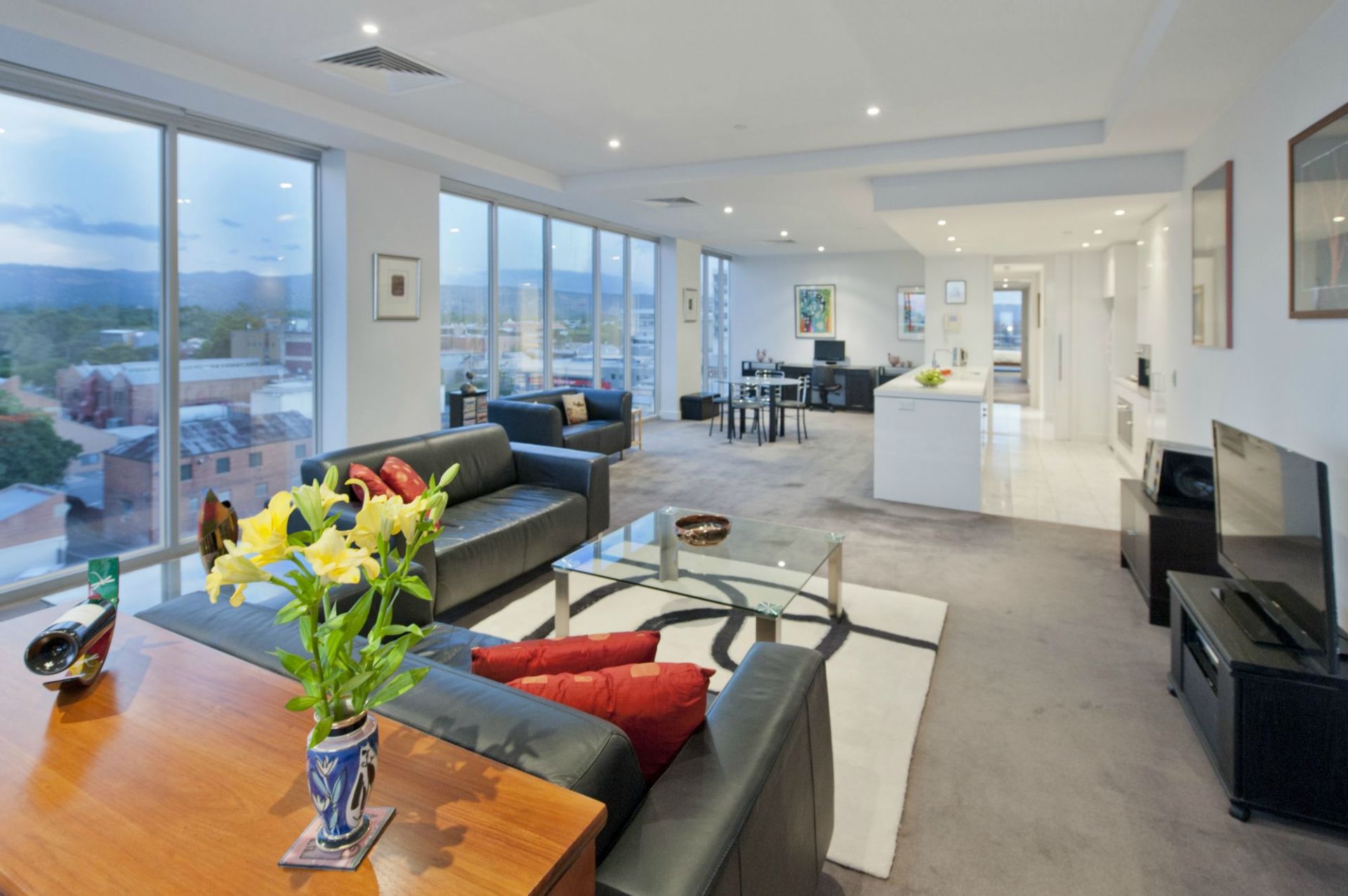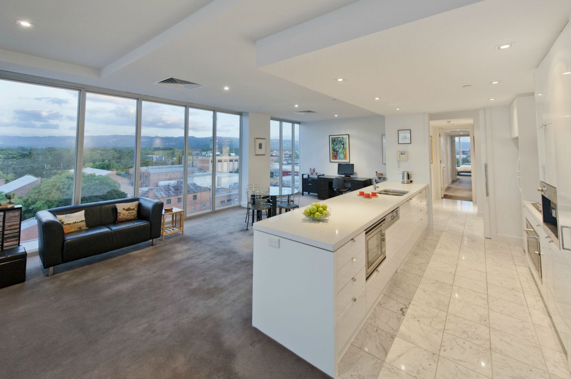 Entertain family and friends in this immaculate Penthouse with floor to ceiling picture windows which have been retrospectively fitted with double glazing. Not only providing spectacular 270 degree views of the Adelaide Hills and city skyline but also noise and thermal insulation for the entire apartment.
