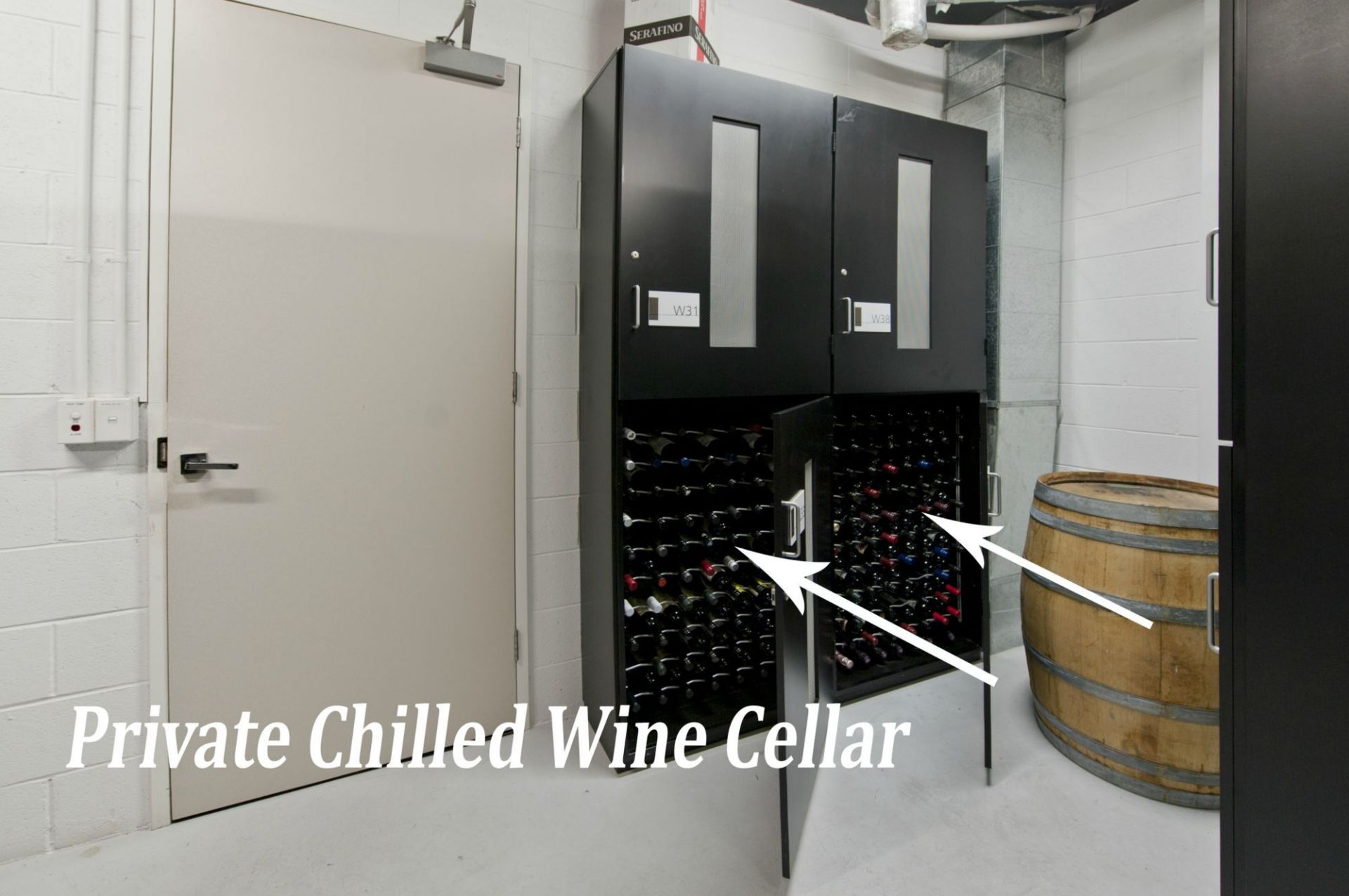 2 lockable wine storage cabinets (180 bottles capacity (approx)) in temperature-controlled wine room