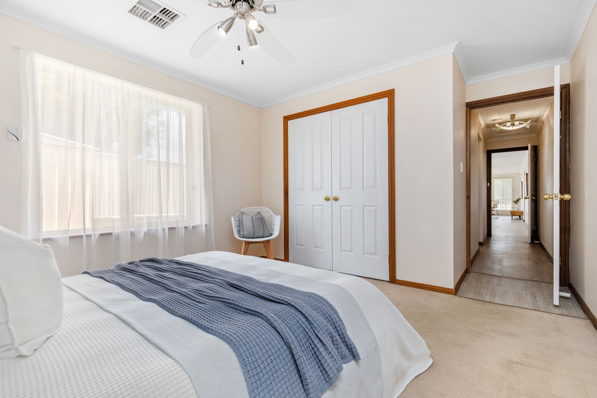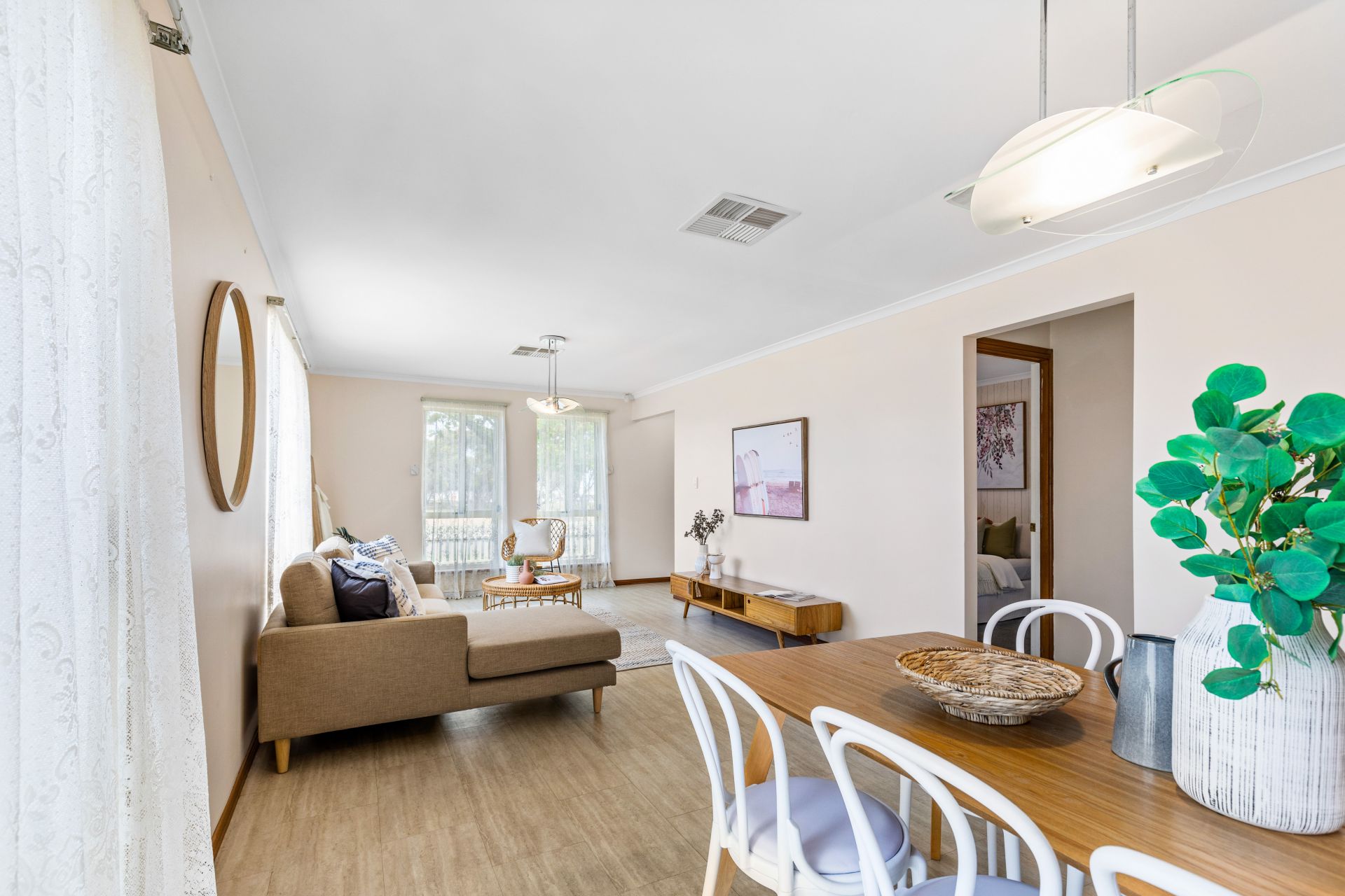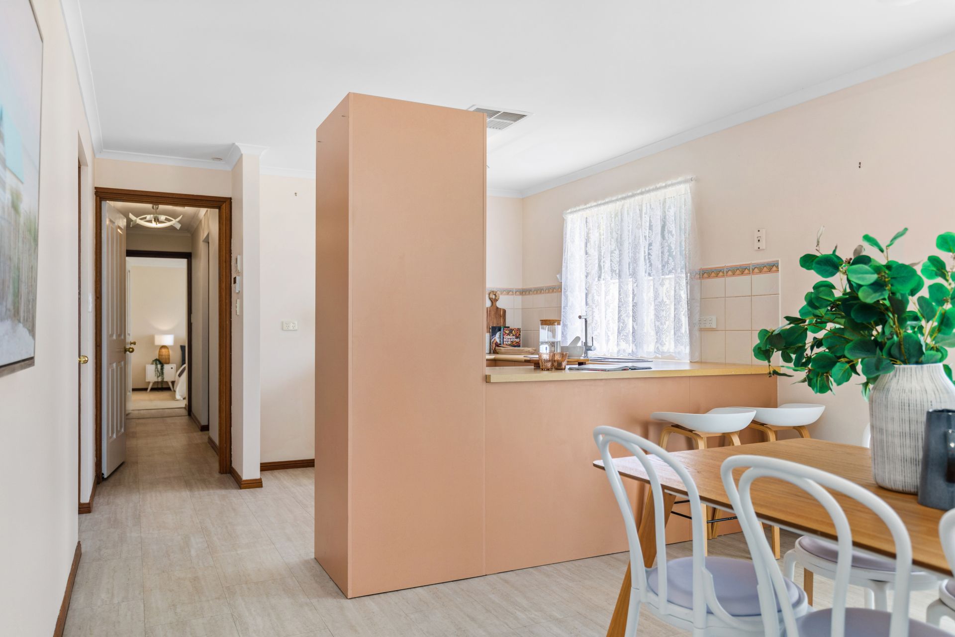The layout offers three good-sized bedrooms, all have built-in robes and plush carpet underfoot. The two guest bedrooms are ideally placed at the front of the home, while the master bedroom is nestled at the rear of the property for added privacy. Easy access to the neat & tidy bathroom, offering a shower, vanity, bathtub and separate toilet plus the adjoining laundry has external access for convenience. The garage has been converted into a study, with a built-in robe and a large storage area, ready for use as home office, playroom or retreat, but depending on your needs it would be easy to change back as the roller door still remains in place. Let everyday living seamlessly unfold in the light-filled open-plan area that combines the kitchen with the living and meals zone while flowing out to a paved entertaining area. The heart of this little gem is the kitchen, delighting the passionate chef with electric hotplates and a stainless-steel oven, plentiful countertop space with breakfast bar seating and good storage including a built-in pantry. Additional features include ducted reverse cycle air conditioning throughout, easy care lino flooring in the high traffic areas and electric roller shutters on most windows & security screens on the rest.