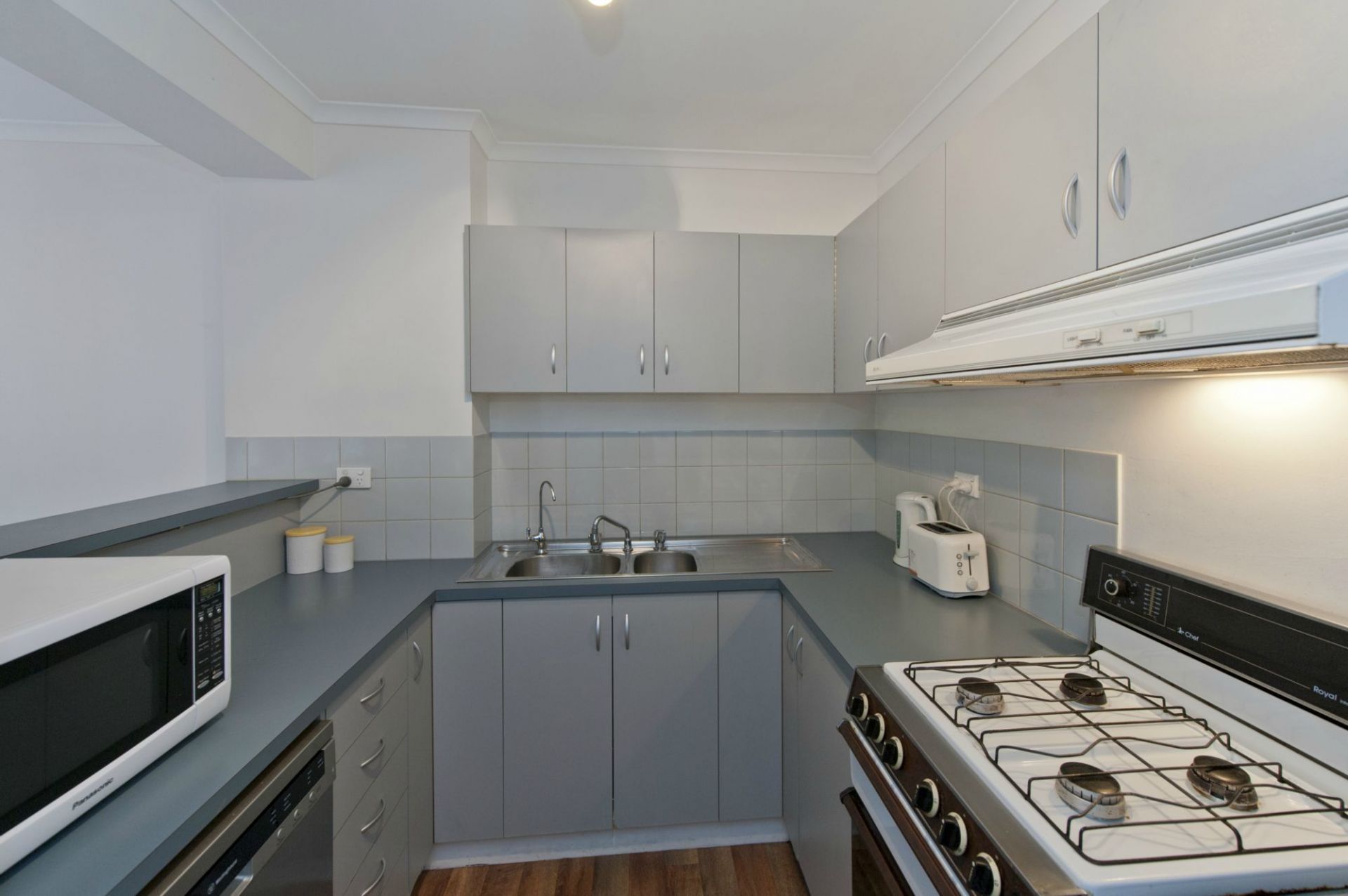 Neat kitchen with gas cooking and dishwasher
