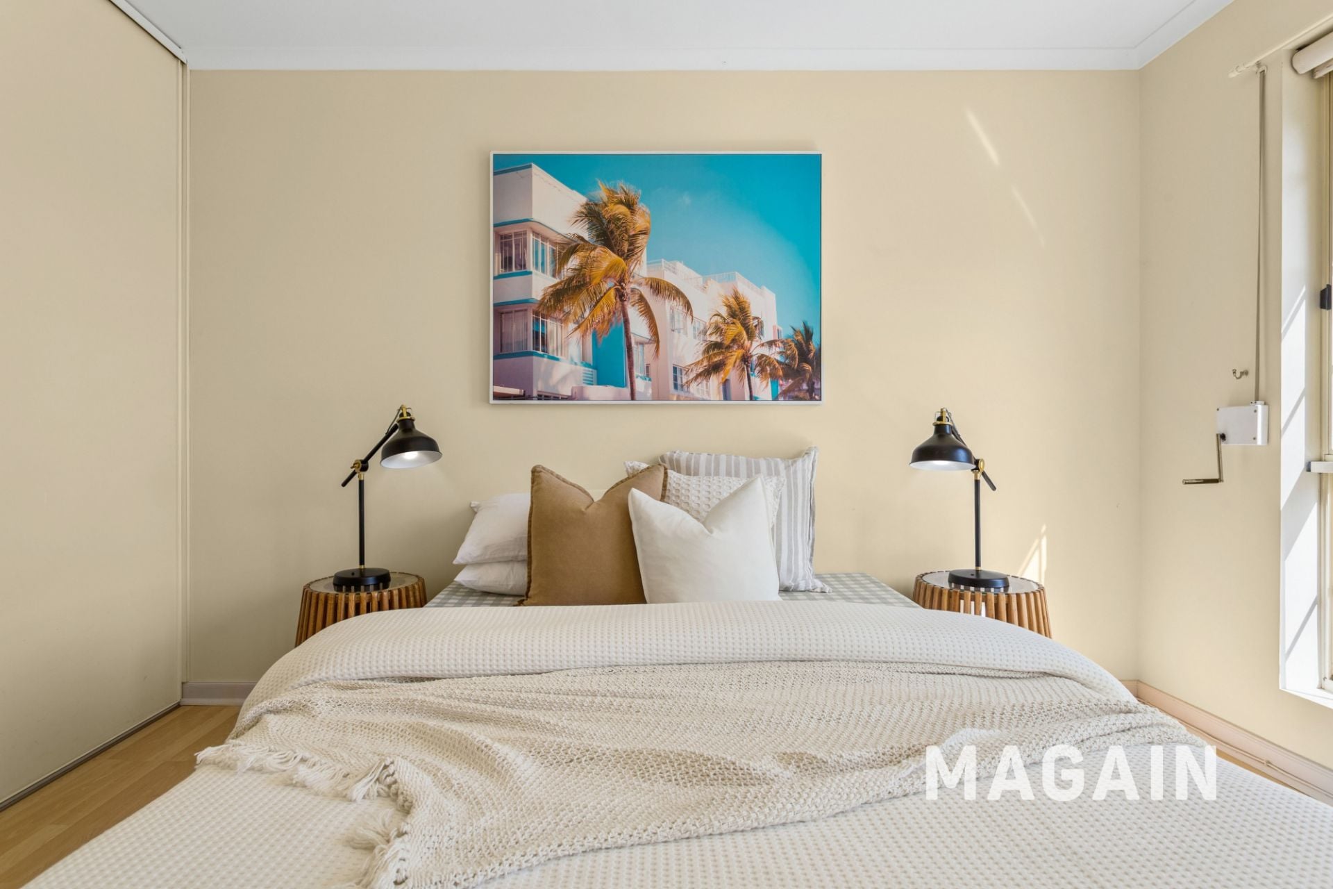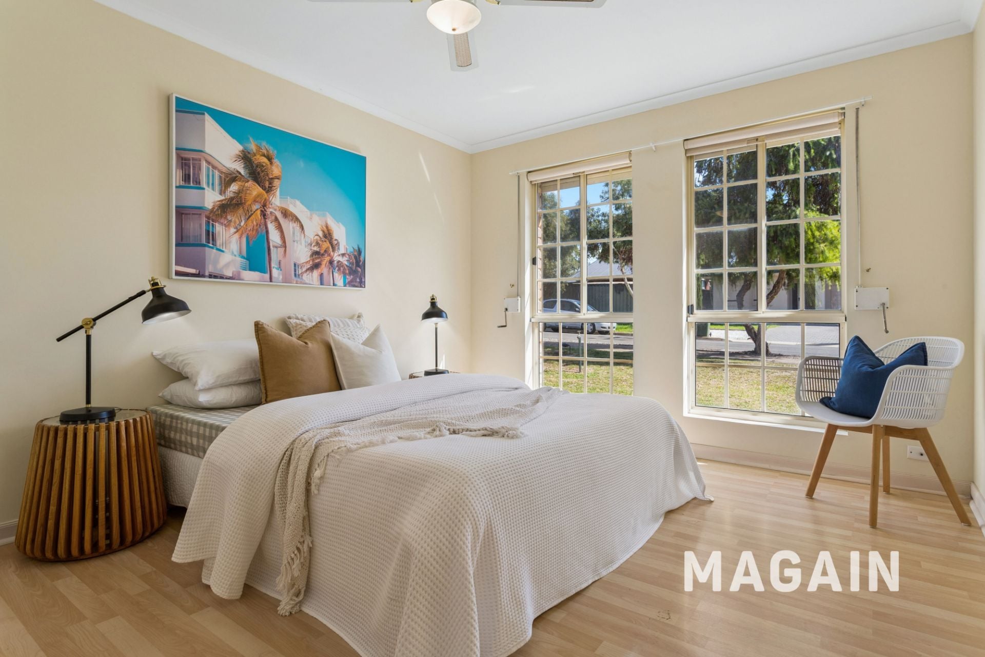 The home is rounded out by two generously sized, well-appointed bedrooms, both filled with natural light and equipped with ceiling fans for added comfort. The master bedroom also features a built-in wardrobe, providing convenient storage space.