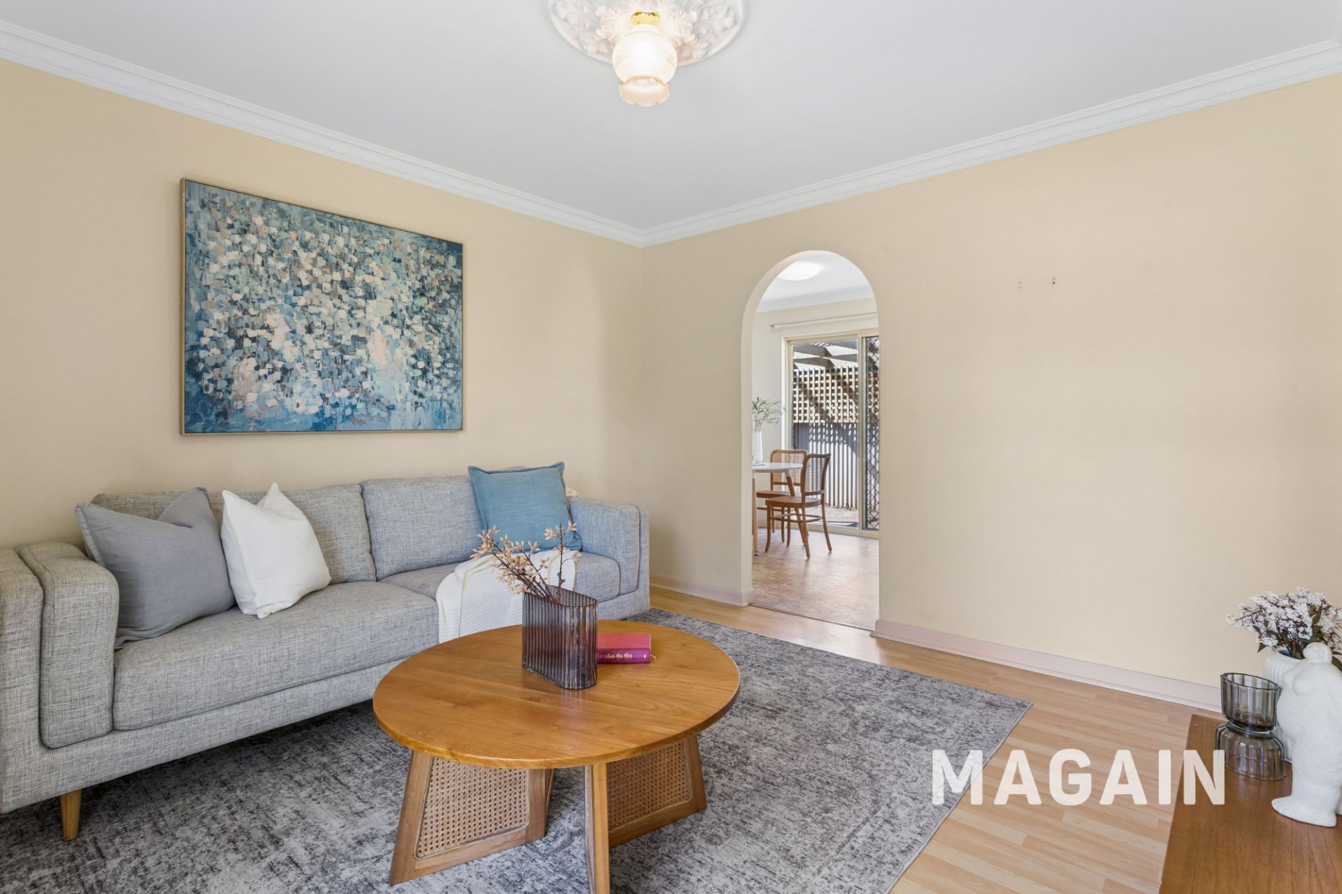 As you step inside, you're welcomed by a warm and inviting lounge room, enhanced by large picture windows that flood the space with natural light. The neutral timber-style flooring provides a versatile backdrop to suit any décor, while a charming archway creates a seamless transition to the central kitchen and dining area. Perfect for entertaining or everyday living, this open-plan space offers ample room to relax and enjoy time with family and friends.