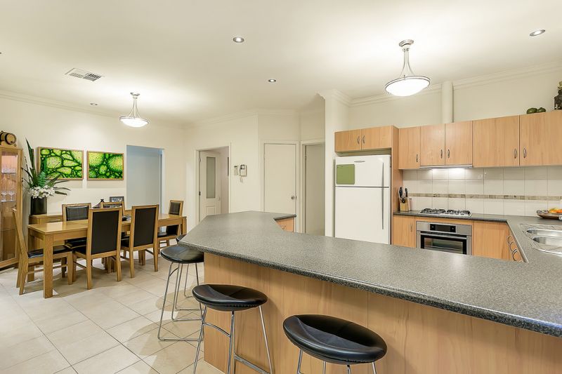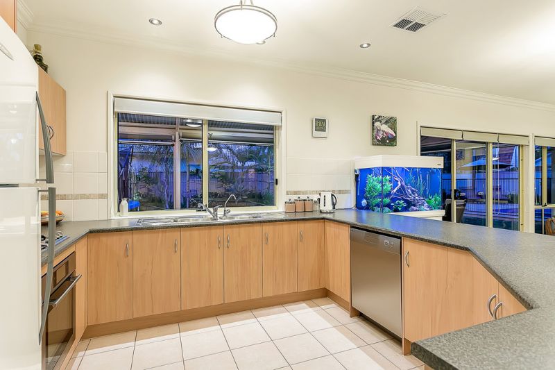 You will be grinning from ear to ear the moment you walk into this north facing, modern built home. Upon entry you are greeted with a formal living area which faces the golf course, and huge master bedroom opposite the living area which boasts a walk in wardrobe, oversized ensuite and bay window, complete with built in speakers that connect to the main sound system. Walking down the quality tiled hallway will take you to the open planned living area.