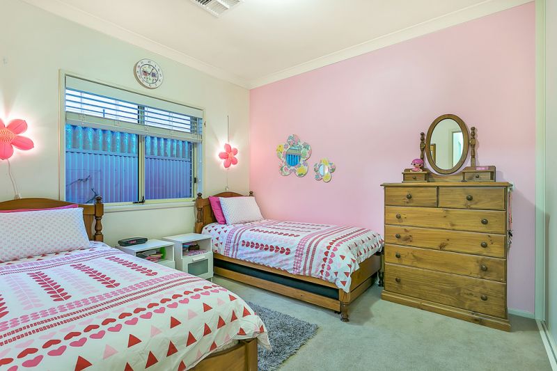 Whats a large family home without a backyard? Don't worry, this property has you covered. Sitting on an 850m2 block, there is plenty of room to move around. Stepping outside you will find a huge outdoor entertaining area, complete with zip track blinds, wood fire for those cool nights and overhead fans for those breezy summer days. This is the perfect year round entertainer! The gardens are fully irrigated with plenty of room for the kids to run around or ride their bikes on, and to add icing to the cake there is also a huge salt water pool complete with pool blanket for usability all year round.