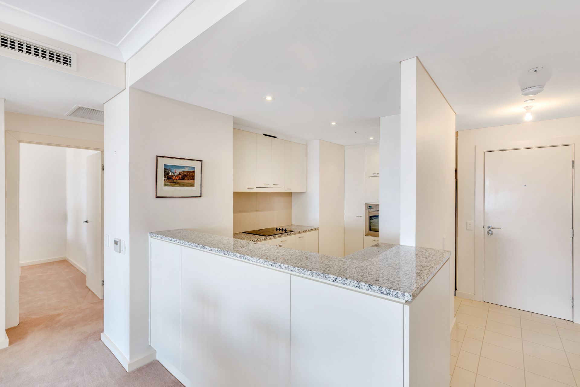 The kitchen is well designed with ample cupboards, dishwasher and marble benchtops.