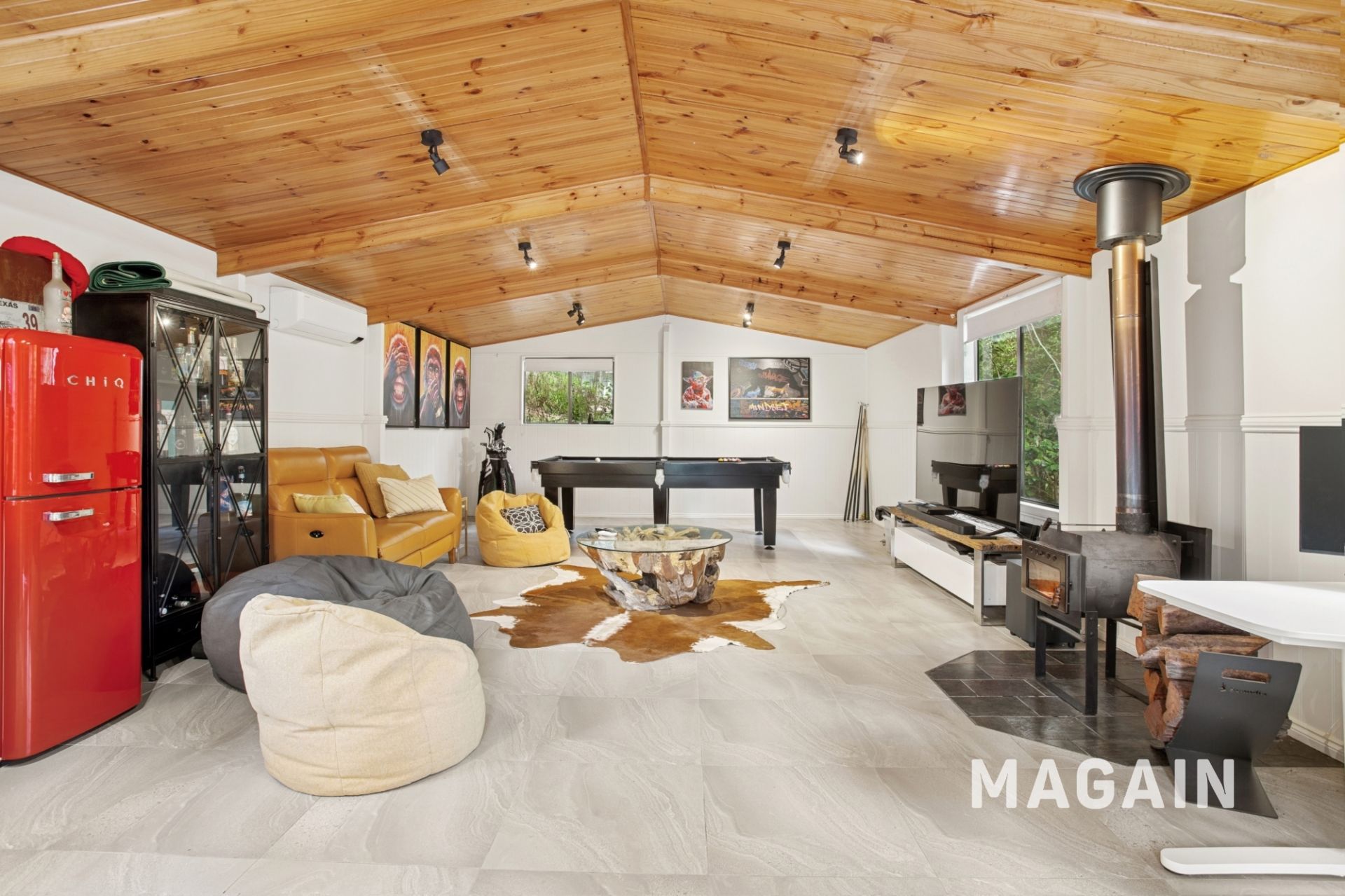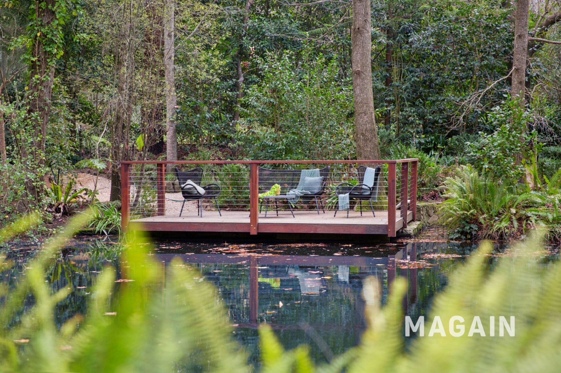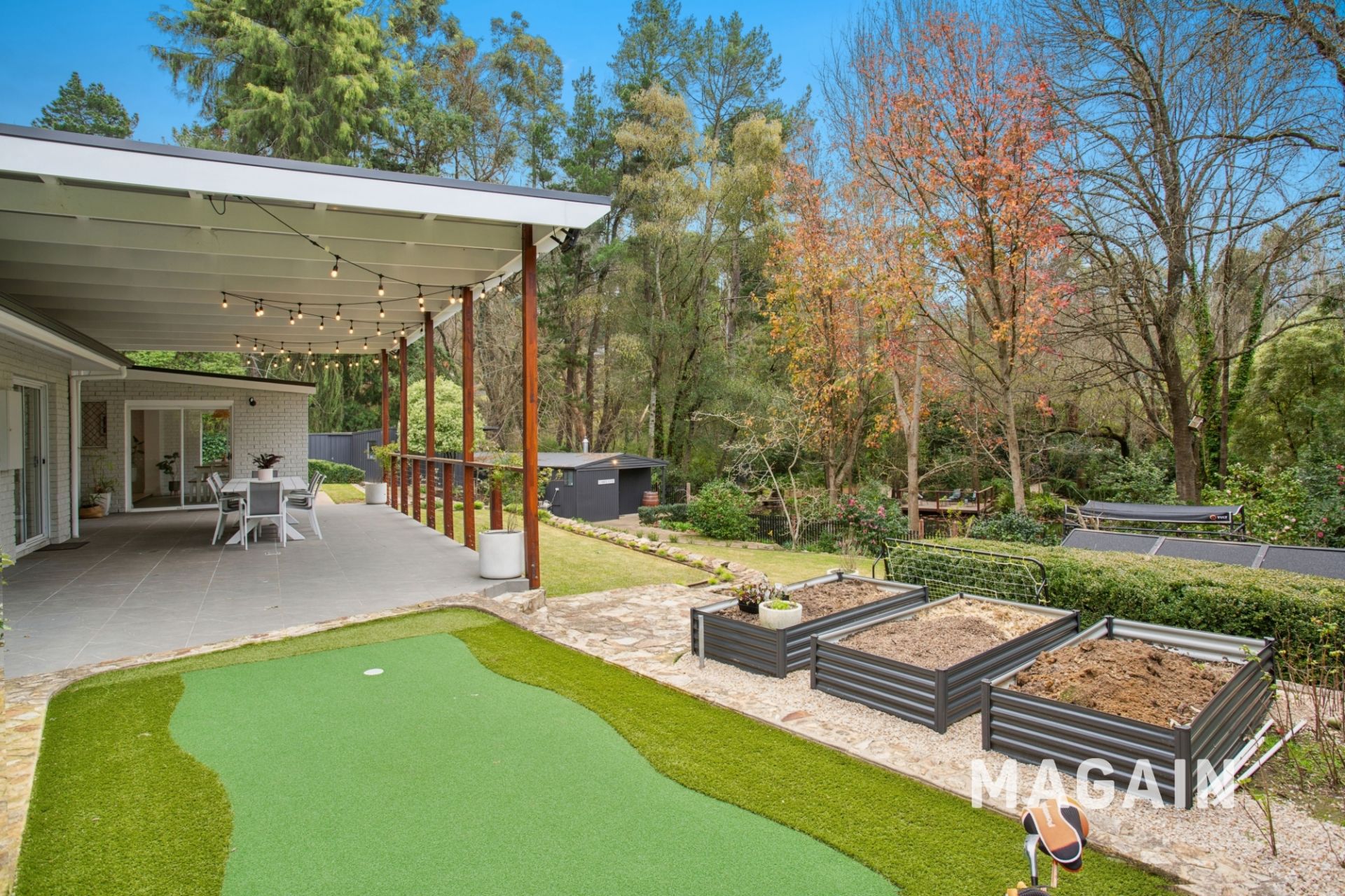 A private sanctuary surrounded by a flourishing garden peppered with deciduous trees and deep pink camellias, an abundance of native birdlife, a private lake fed by a winter creek with yabbies, turtles, ducks and their brood of ducklings in spring. A place for relaxed living, entertaining family and friends, teeing-off from the miniature putting green, warming yourself by the fire pit, gathering freshly laid eggs with compliments of four red chook house hens (included in the sale) and acquainting yourself with the local visiting koala.