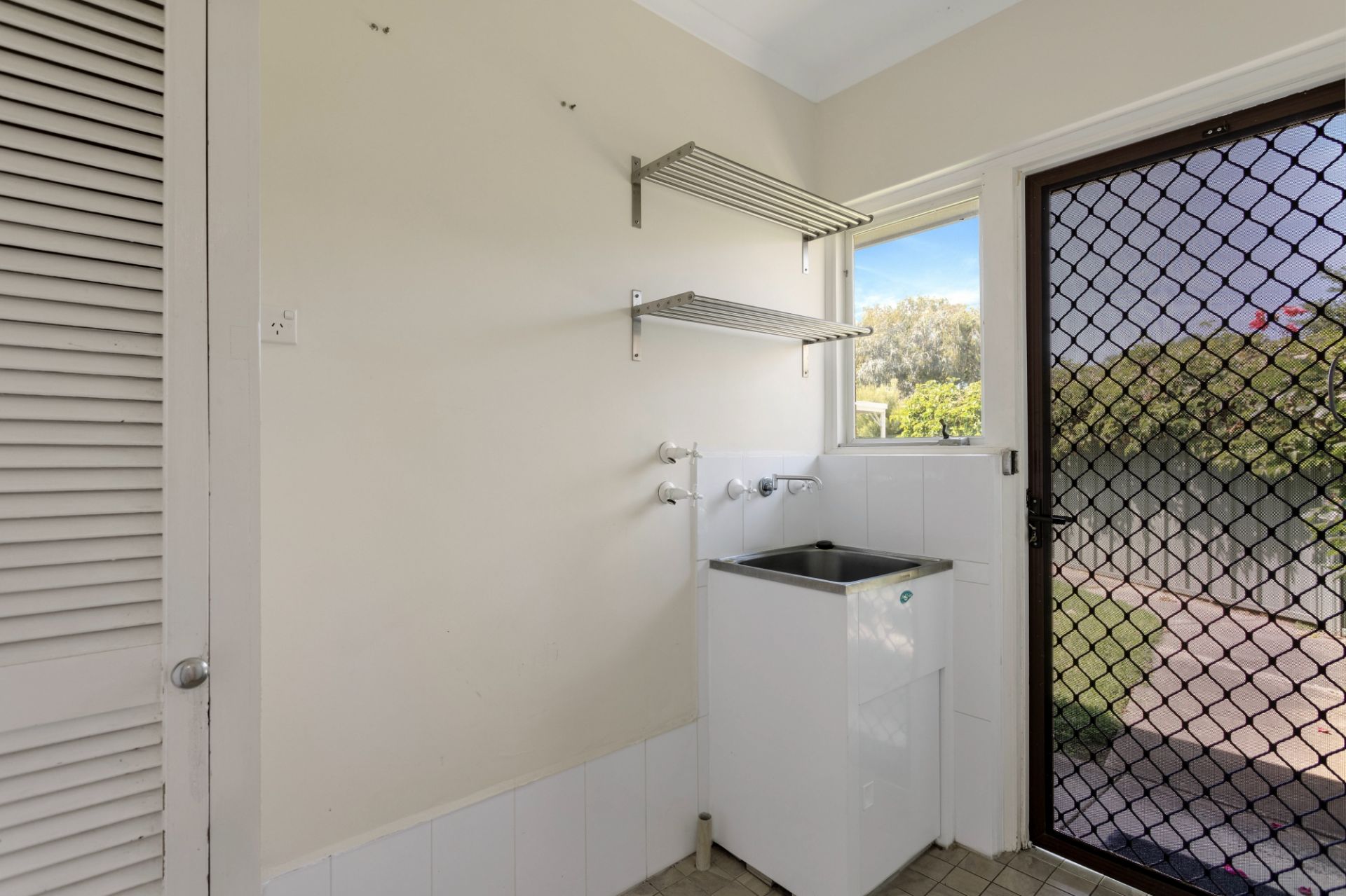 > separate laundry with built-in cupboard and rear access