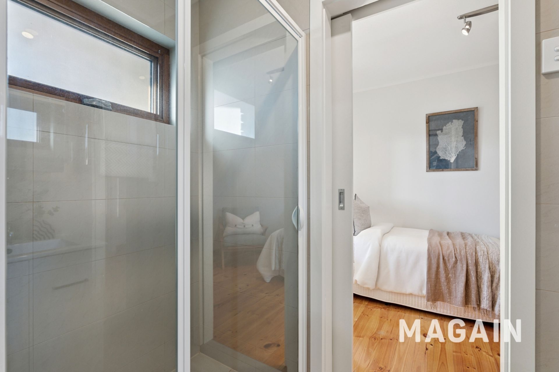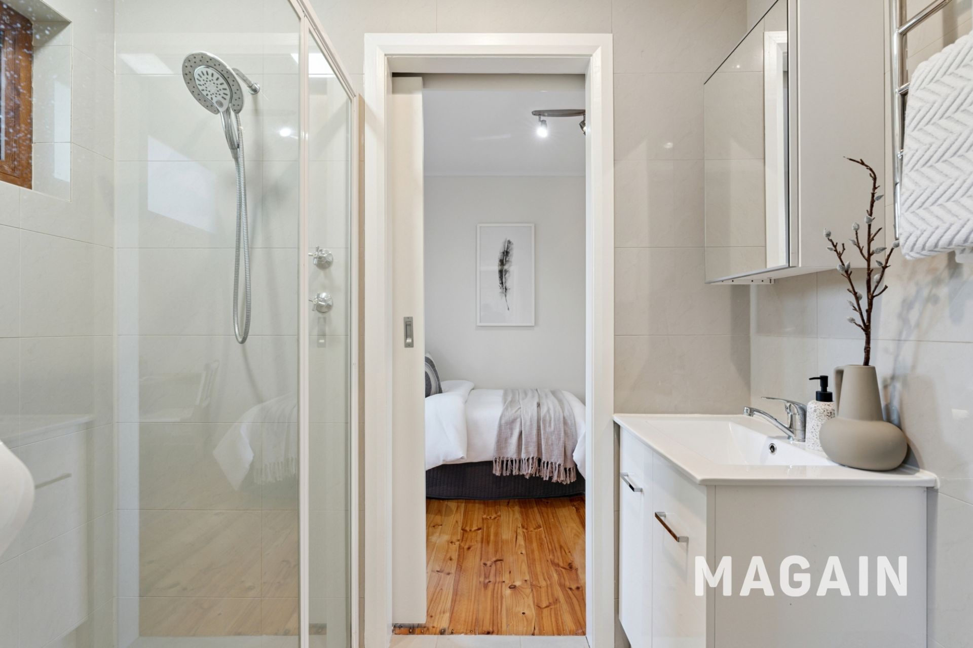 Privately positioned, the main bedroom retreat is accessed via its own hall lined with double-sided robes. A luxurious ensuite showcases floor-to-ceiling tiles, a spa bath and a private patio with plants and screens-your own oasis of relaxation.