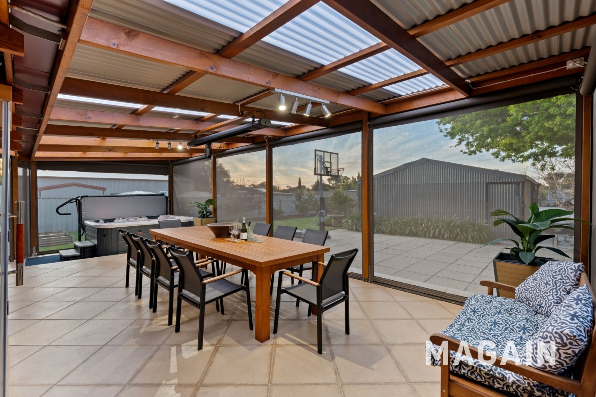 Outdoors, the features continue to impress. A newly roofed skillion style entertaining area is fully equipped with automated café blinds, an infrared heater and even its own external toilet, ensuring all-season enjoyment.