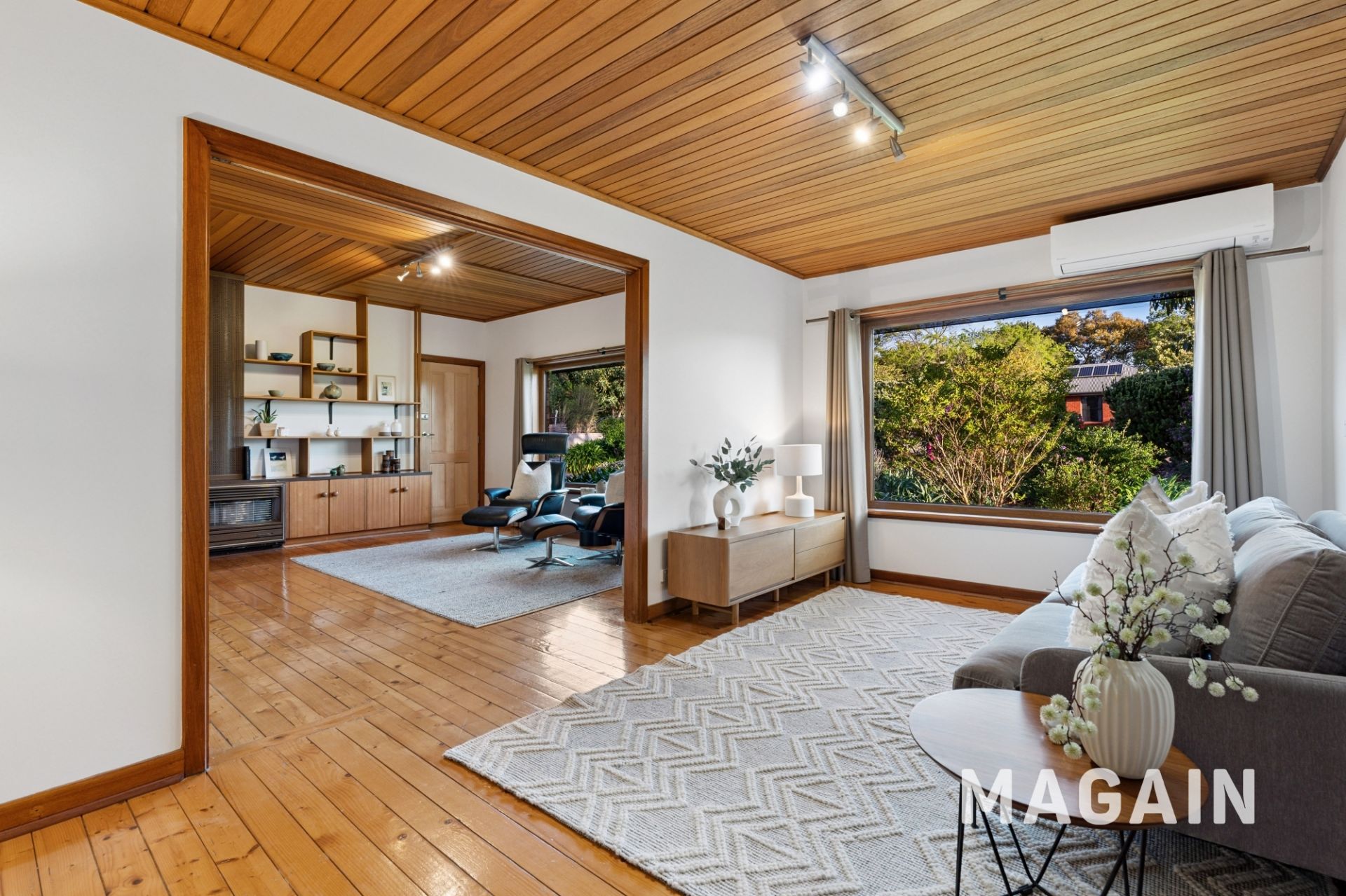 Inside, timber flooring and high ceilings flow throughout, complemented by double-glazed windows for outstanding insulation and sound protection. The front formal sitting lounge makes a welcoming first impression, framed by a picture window overlooking the leafy country-style front garden and sets the tone for this immaculate home.