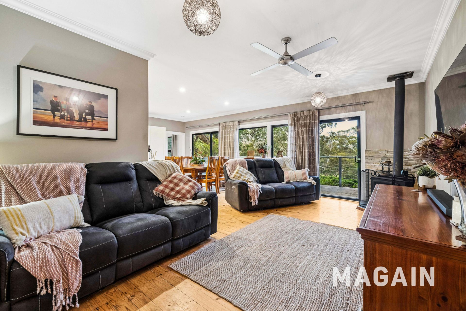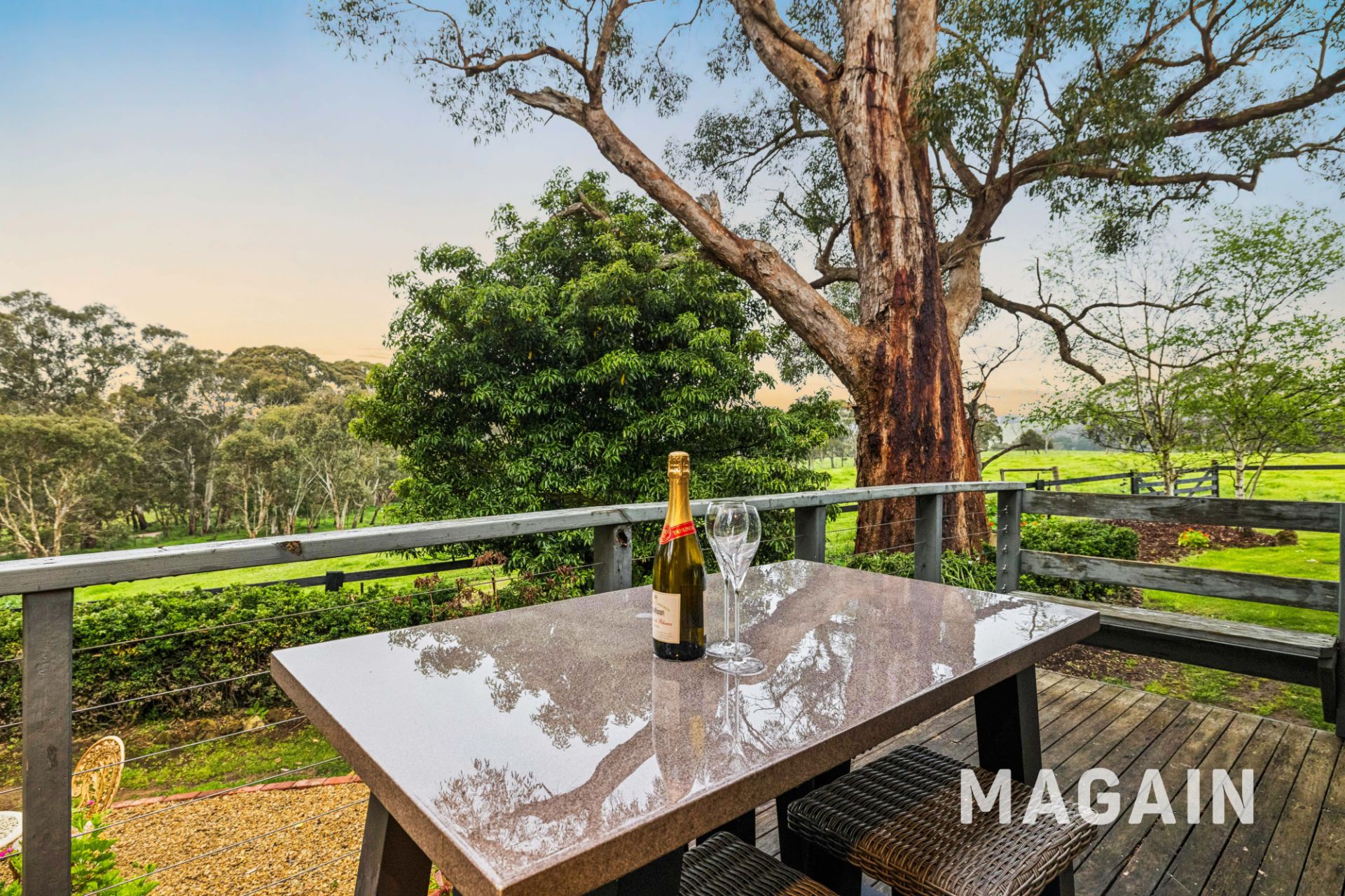 The adjoining lounge and dining space take in sweeping views across the front paddock, with sliding doors opening to an elevated deck – the perfect place to unwind with a glass of wine or a good book inside on the lounge front of the slow combustion heater.