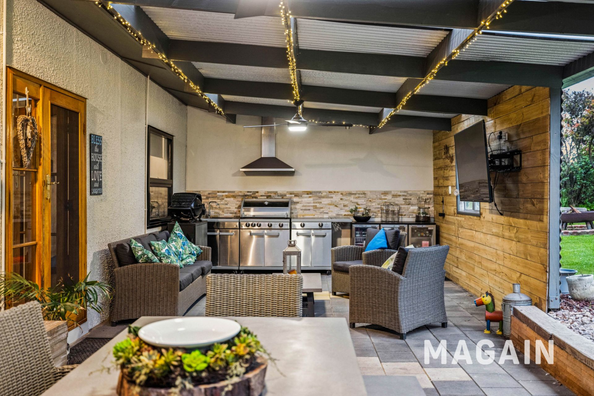 Outdoor living is equally impressive with a full-length undercover entertaining area at the rear, complete with ceiling fan, outdoor kitchen area and plumbed sink – perfect for family gatherings or relaxed evenings at home.