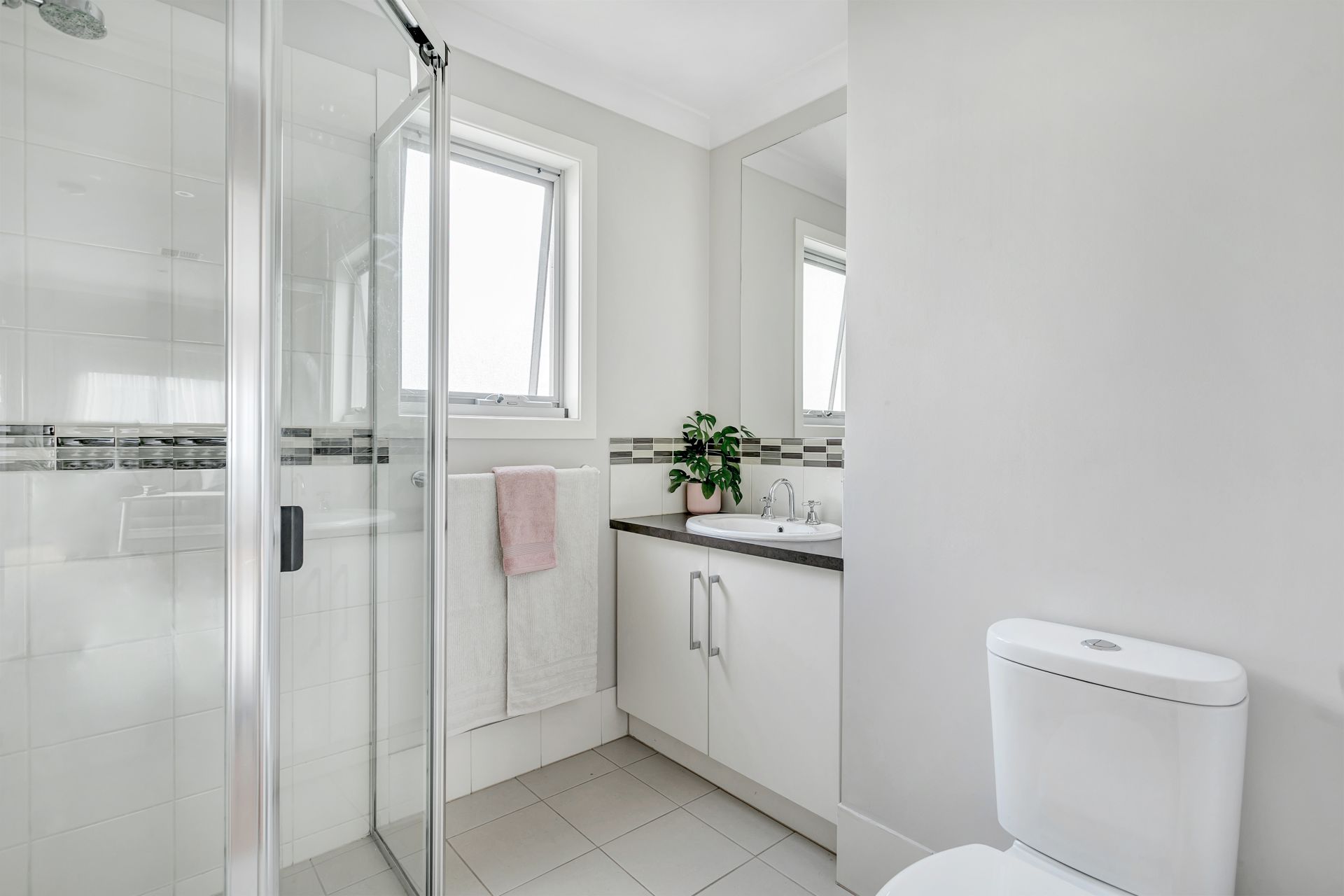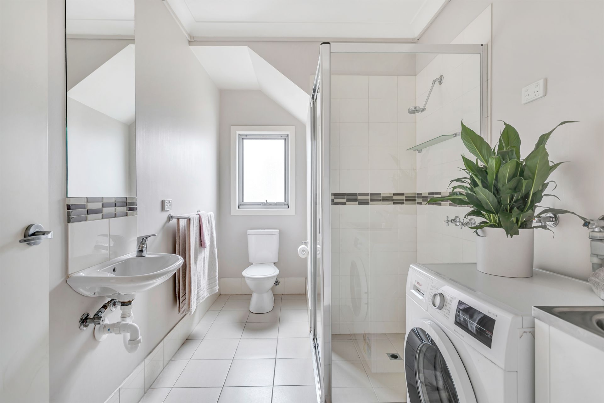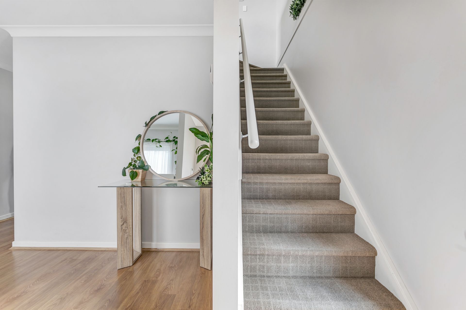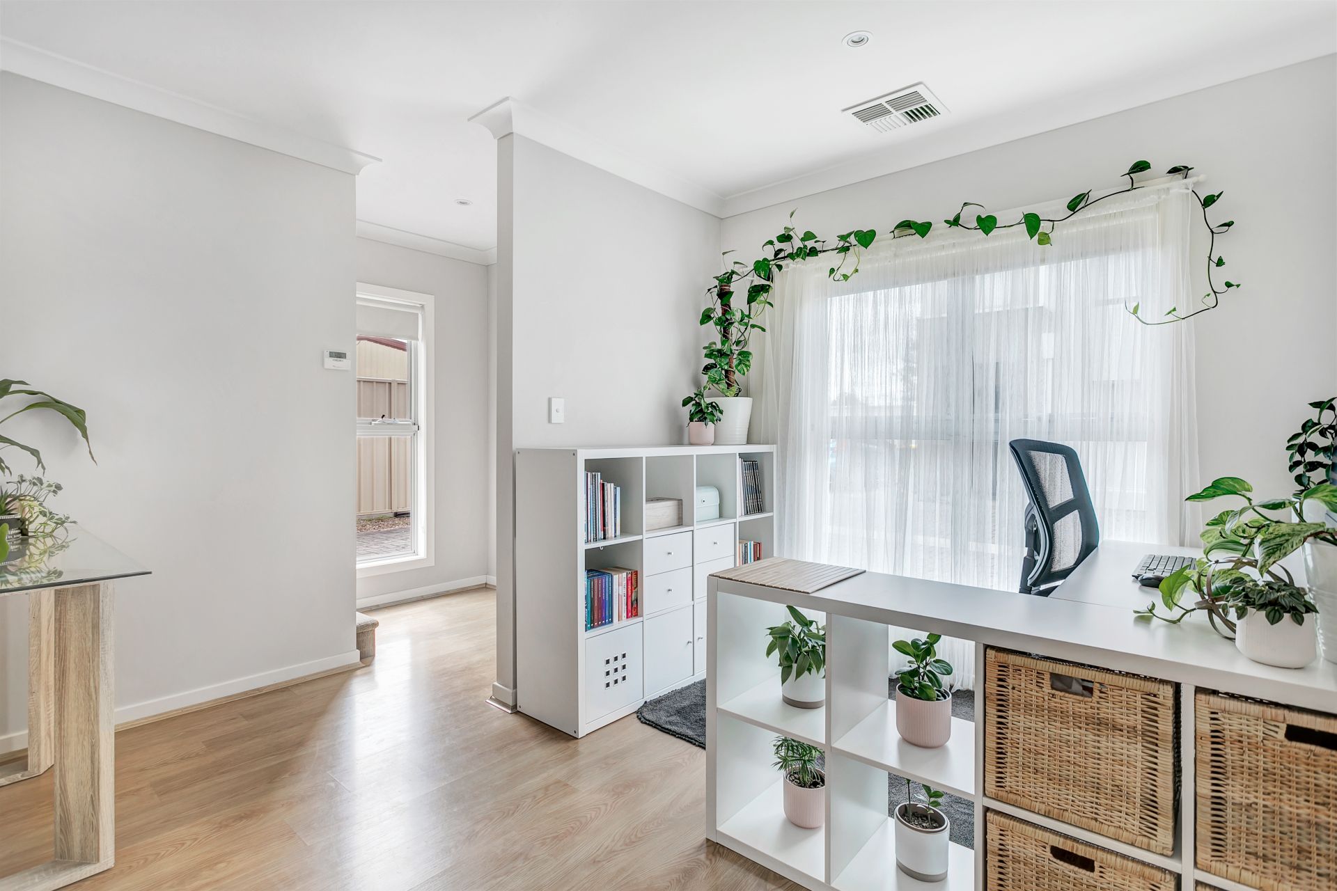 Downstairs, you find a home office in a space that could easily be set up as a second living area. The two spacious downstairs bedrooms both feature built in wardrobes. A combined second bathroom and laundry services the downstairs bedrooms.