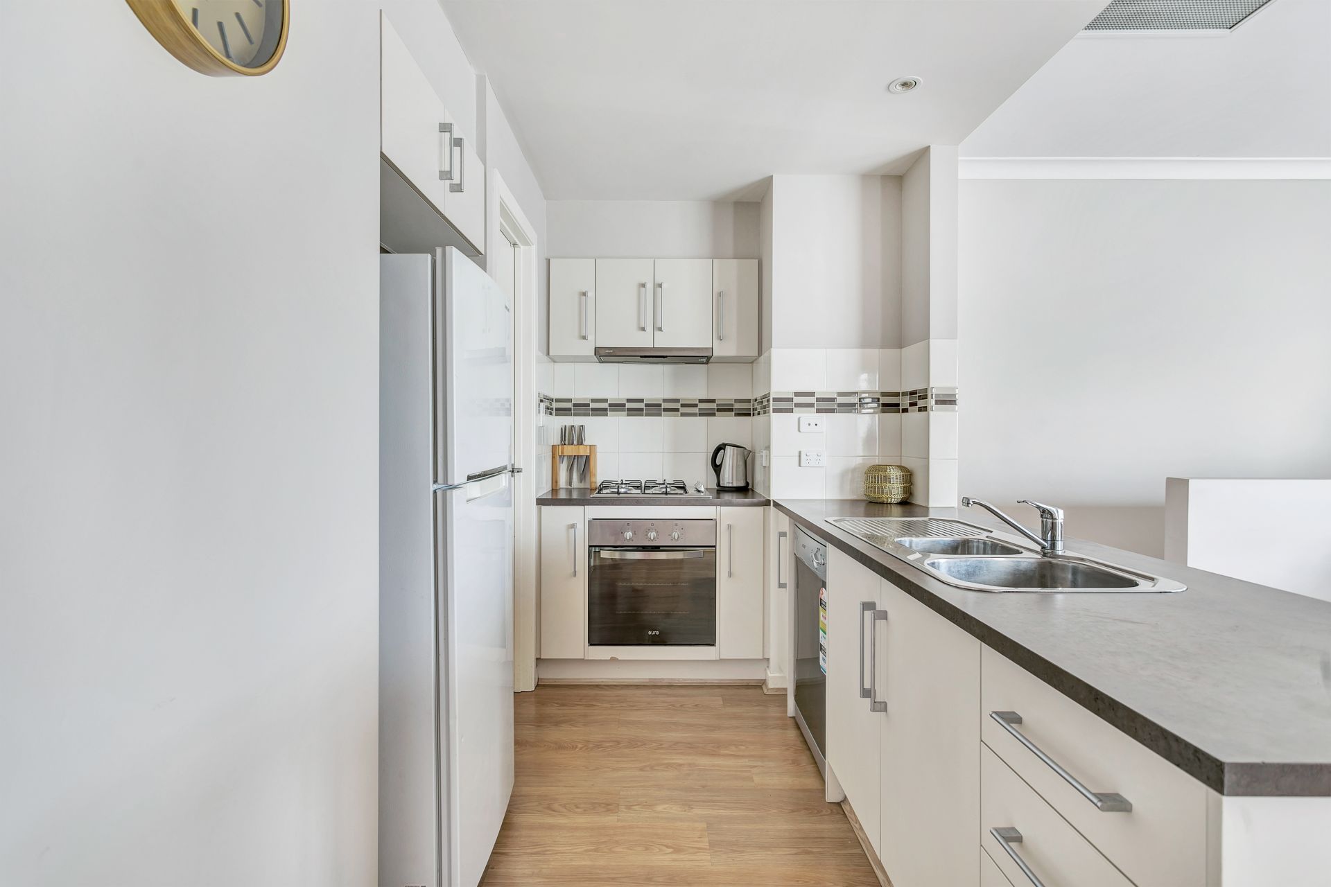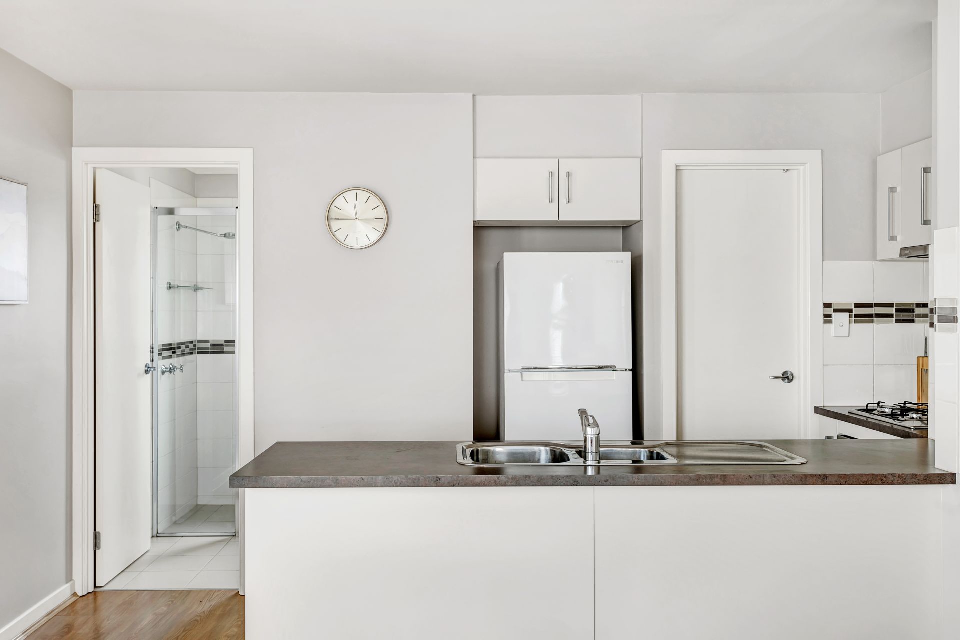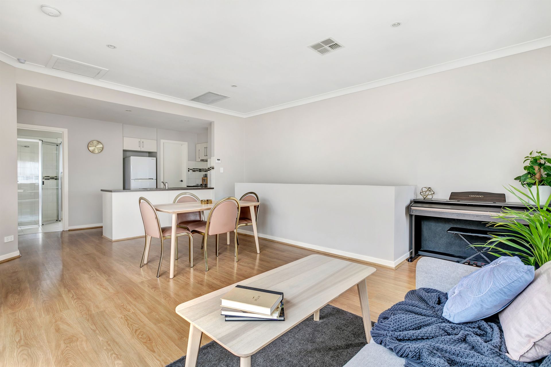 Entering the home, you are struck by the light, airy feel this immaculate townhouse has. Heading upstairs, the open plan offers plentiful indoor living space and flows out onto a beautiful tiled balcony, the perfect place to enjoy your morning coffee. The huge master bedroom, also with access to the balcony, has an impressive walk-in wardrobe. The upstairs bathroom is conveniently located next to the bedroom. The well-appointed kitchen features everything you expect including dishwasher and gas cooktop. Ample kitchen cupboard space is complemented by a surprisingly large walk-in pantry with plenty of shelf space and extra power points. Ducted reverse-cycle air conditioning ensures year-round comfort.