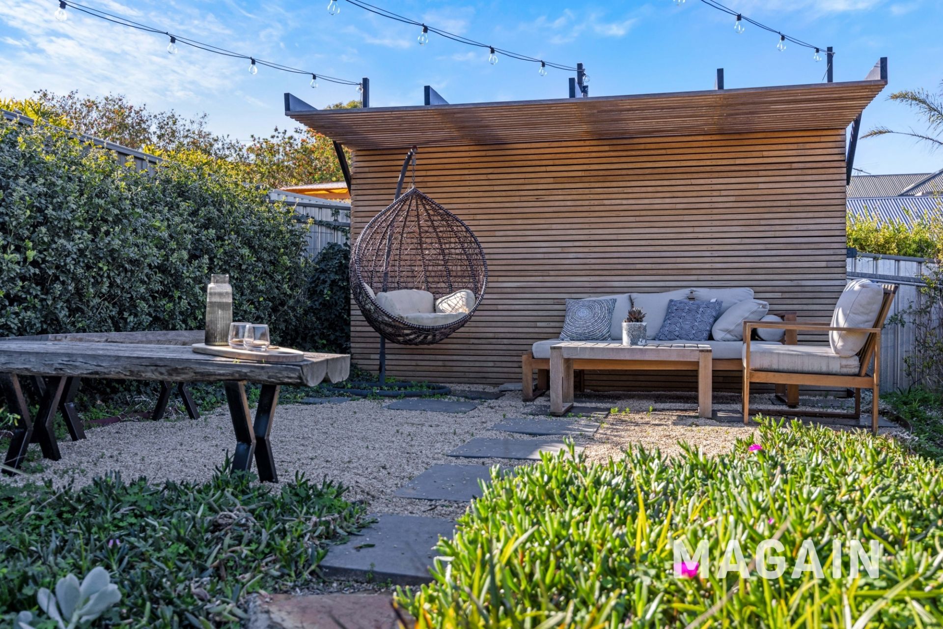 Outside the retaining walls have been replaced with concrete sleepers, reducing the risk of termites around the home. There's just enough lawn for kids and pets out back, without the maintenance, and a cute little shaded seating area for relaxing with a glass of wine.
