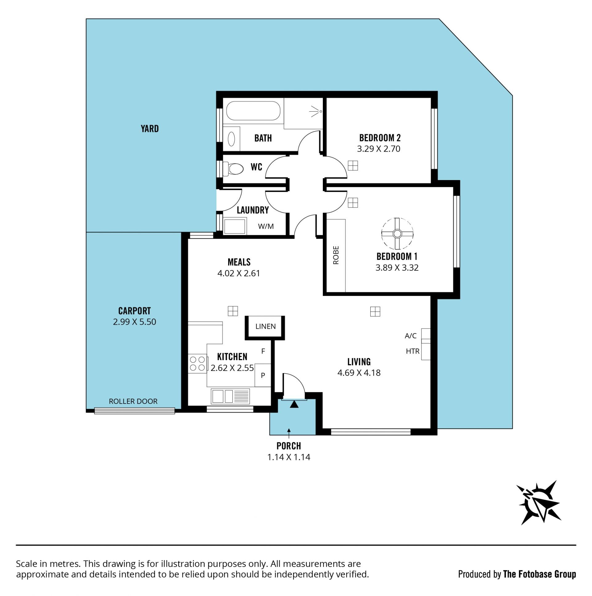 - Two bedrooms, both with ceiling fans (main with built-in robe)