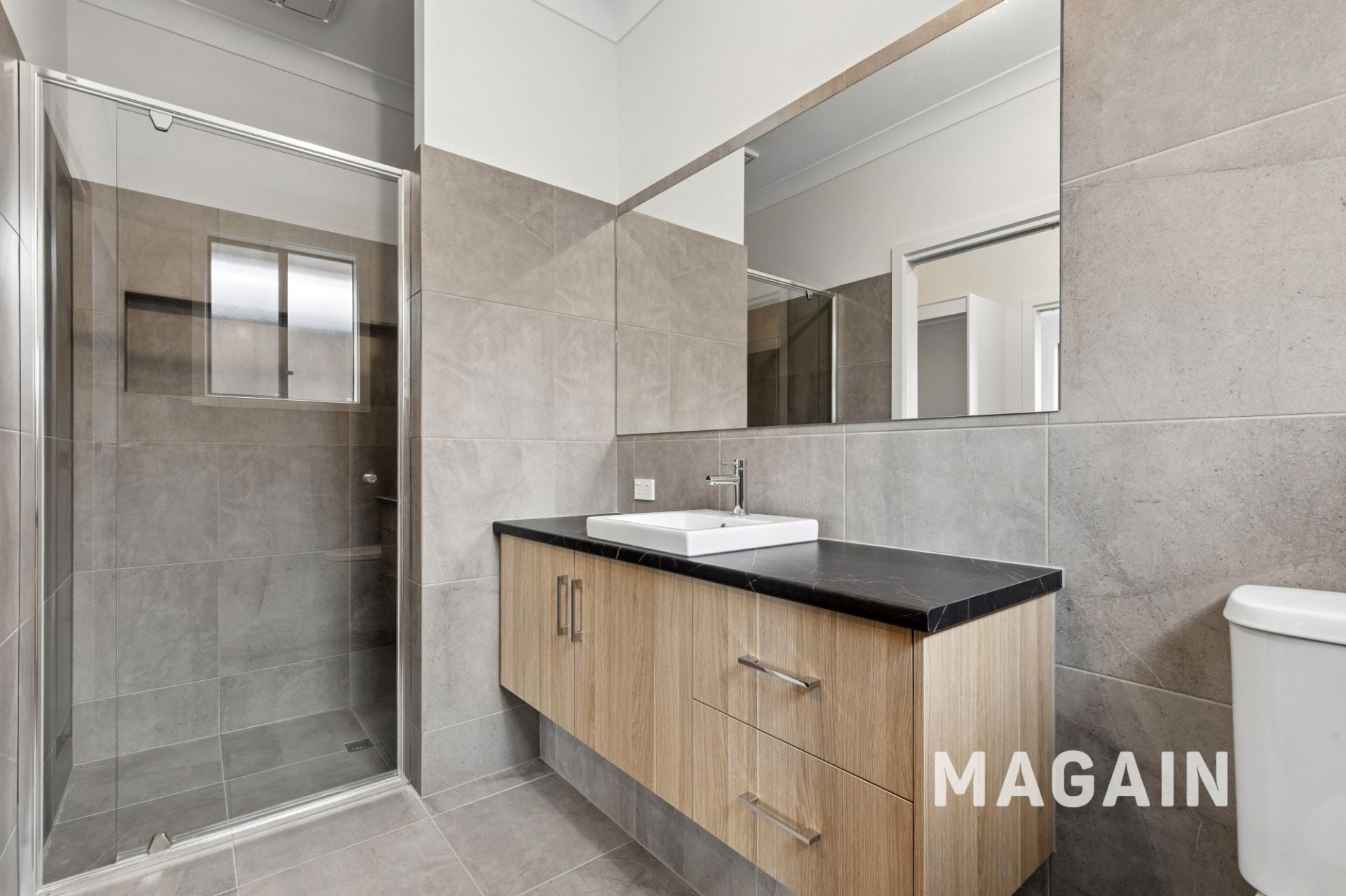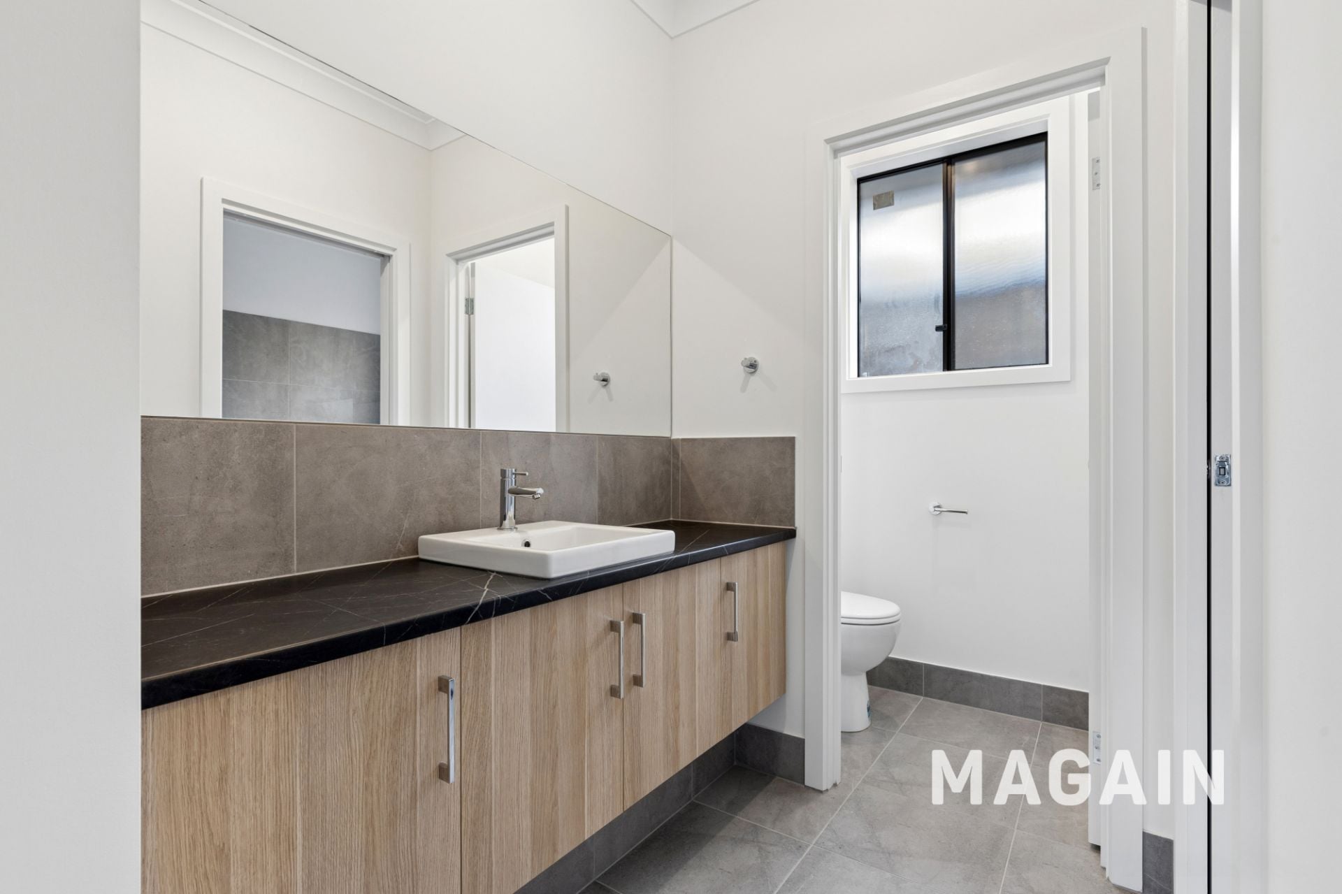 > Neat and airy bathroom with separate toilet