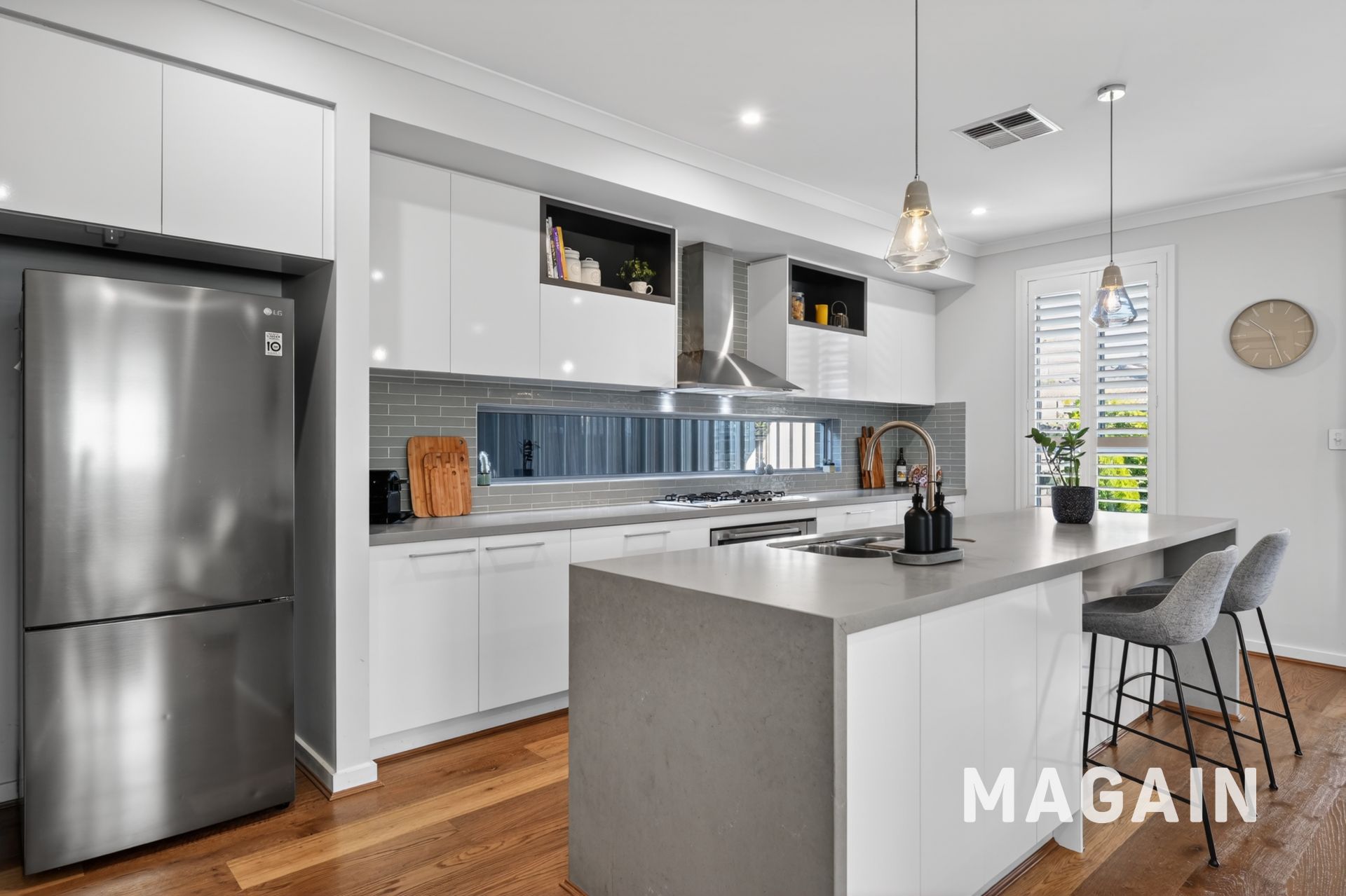 From its striking street presence-defined by clean architectural lines, a raised portico and exposed aggregate driveway-you know this is a home that delivers more than the standard.