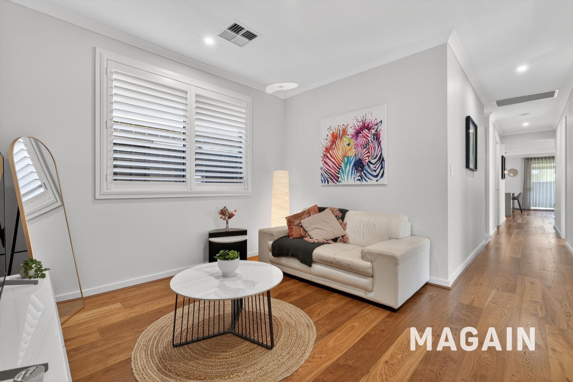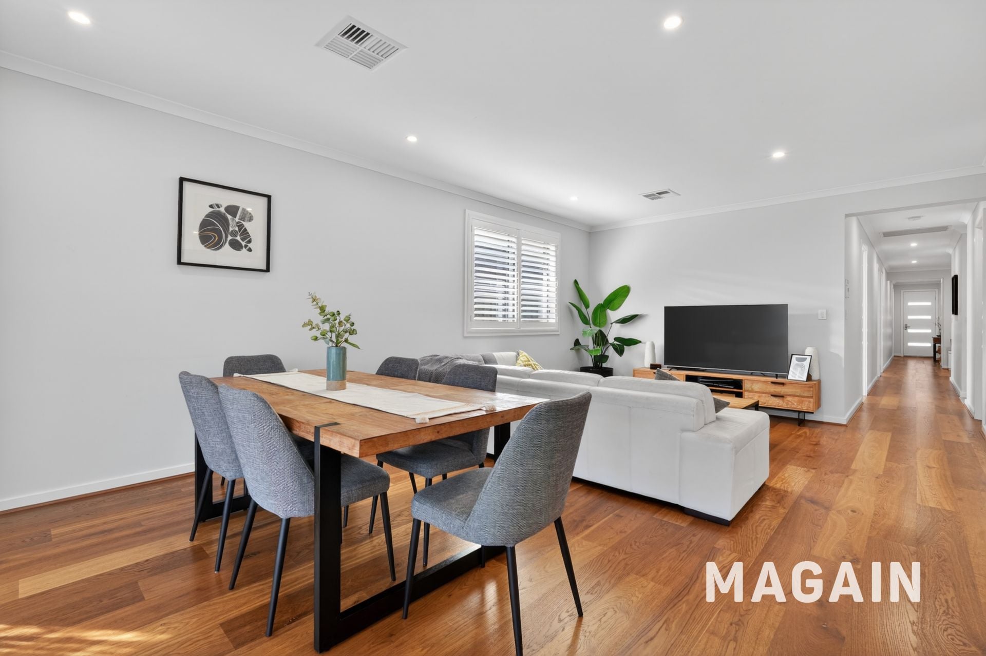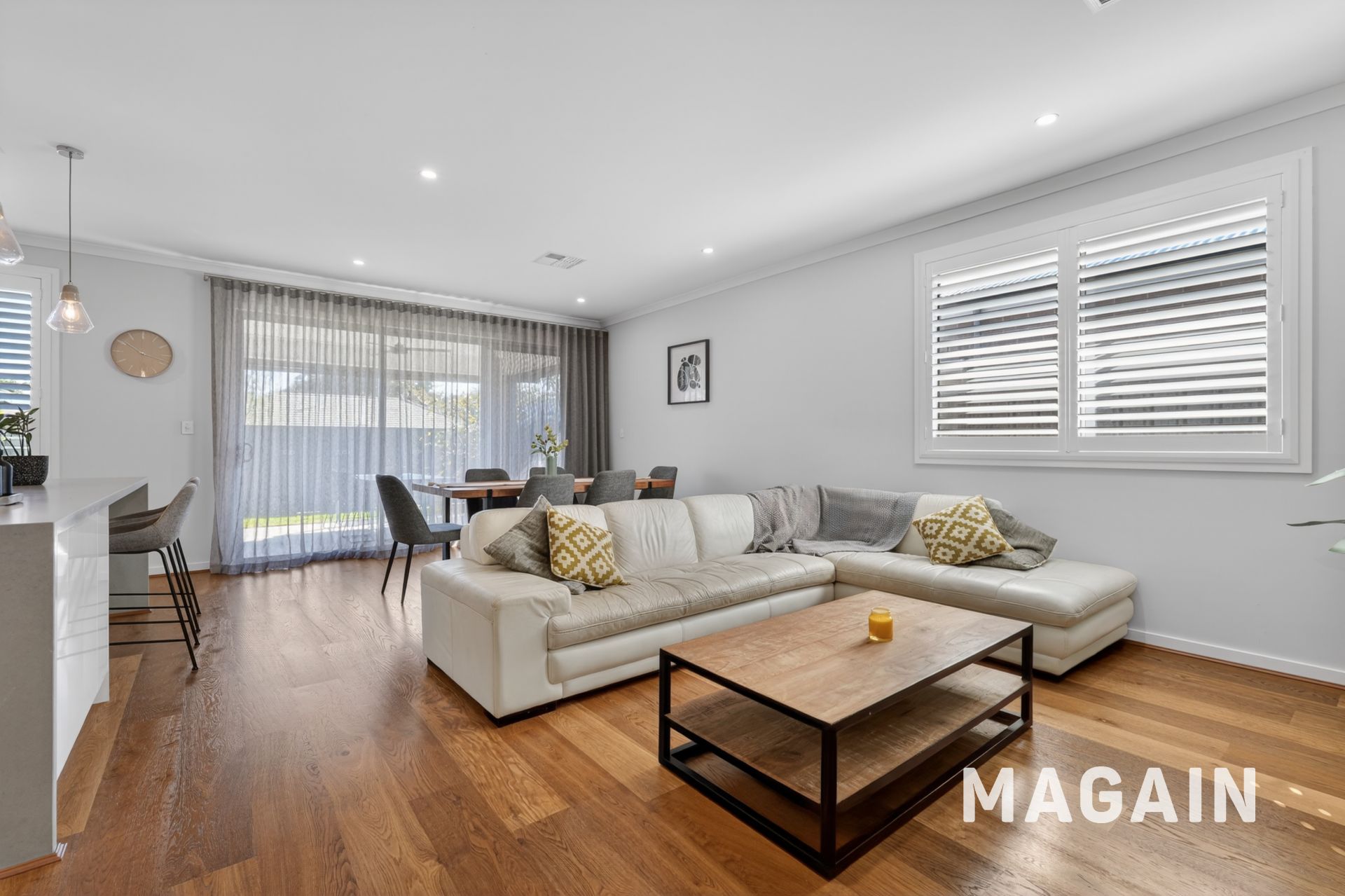 Step inside and the tone is immediate: warm timber floors, natural light and a layout that simply makes sense. The master suite is privately positioned at the front, offering a true parents' retreat with plantation shutters, walk-through robe and a beautifully finished ensuite with full-height tiling and timber accents.